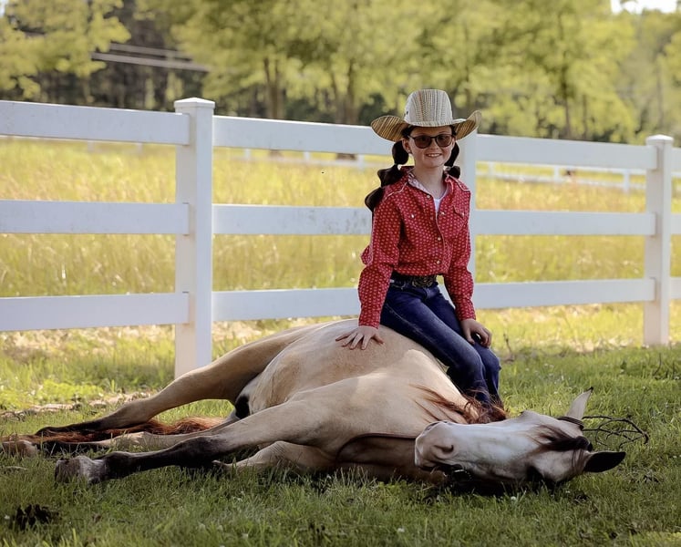 ONLINE AUCTION Place your bids at www.PlatinumEquineAuction.com Starting Bid $3500 Auction ends June 16th, 2024 Need a new saddle? Check out White Rock Saddles on our website or Facebook! William is a 5 year old gelding pony! That’s stands 13HH! With an amazing personality! He is willing to do anything u want and is supper smooth and easy going he is the right size for a kid and an adult! He was started by the Amish and rode to school ever day. He lays down on command! We have used him to pen cattle in the pasture and in the sale barn we have used him to snag calfs to take to the branding pit ! He is a pony u can hop on and do anything with ! He is a in your pocket type of pony ! Go to the gate call his name and he will come running ! There is not one bad thing I can say about this pony he is the right color (Buckskin ) ! With an amazing thick tail that drags the ground ! If u are looking for a pony that is bomb proof that rides like a big horse with a big stop and one step lope ! He is your pony! Contact Brittany 256-221-4334 with any questions. Located in Mt. Hope, AL. ONLINE AUCTION Place your bids at www.PlatinumEquineAuction.com Starting Bid $3500 Auction ends June 16th, 2024 Need a new saddle? Check out White Rock Saddles on our website or Facebook!