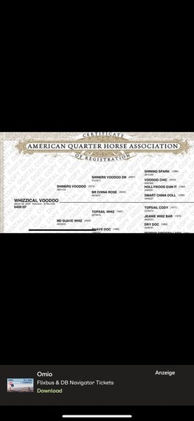 Zum Verkauf steht unser junger AQHA-Hengst WHIZZICAL VOODOO, genannt Whizzi. Geboren am 06.03.2025, in attraktiver Palomino-Farbe, gezogen in Deutschland. Whizzi ist ein Sohn von SHINERS VOODOO und bringt damit beste Voraussetzungen für eine sportliche Zukunft im Reining- oder Cowhorse-Bereich mit. Er zeigt sich korrekt gebaut, bewegungsstark und aufmerksam, dabei im täglichen Umgang sehr lieb, freundlich und unkompliziert. Ein netter junger Hengst mit angenehmem Charakter und viel Potenzial für die weitere Ausbildung. Kurzinfos: • AQHA Hengst, Palomino • Geboren: 06.03.2025 • Sohn von Shiners Voodoo • AQHA Reg.-Nr.: 6408187 • Microchip vorhanden • Abzeichen: Stern, Blesse & Schnippe, Socken an den Hinterbeinen • Standort: Deutschland • AQHA-Papiere vorhanden Geimpft entwurmt & nrha eingezahlt Ein spannendes Nachwuchspferd mit sportlichem Background und tollem Wesen. Preis: VB Weitere Infos, Fotos oder Videos gerne auf Anfrage Platz vor preis