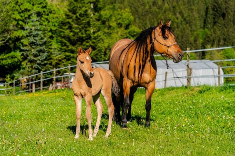 QB Peanut King Sail - vielversprechender, bildhübscher Quarter Horse Hengst, geboren 2025, überzeugt schon jetzt mit einem schönen und stabilen Gebäude, seiner tollen Farbe Dun und seinem lieben Wesen. Er wird ein Endmaß von ca. 150 cm bekommen. Der Hengst ist 92% Foundation gezogen. Peanut wächst artgerecht unter optimalen Bedingungen mit anderen Jungpferden im Offenstall auf, kennt bereits Tierarzt und Hufschmied und wird bei Abgabe altersgerecht geimpft und entwurmt übergeben. Der Hengst ist 6-Panel n/n. Im täglichen Umgang zeigt er sich verschmust, neugierig und sehr menschenbezogen. Kennt das Fohlen ABC, ist halfterführig und wird täglich gehändelt. Seine tolle Art und guten Bewegungen machen Peanut zu einem vielversprechenden Nachwuchspferd - sowohl für den Freizeitbereich als auch für den Sport. Er wird mit AQHA und NFQHA Papiere abgegeben.
