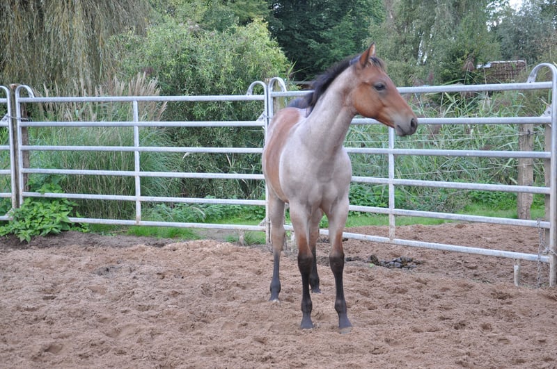 Very sweet young stallion with special charisma and charm. Great movement potential with correct conformation and straight legs. Kind, friendly and calm character. Great pedigree that promises a successful, reliable all-round horse. The sire: MJM Saltys Blue Ezra, a Hancock / Blue Valentine Fondation stallion The dam: Smartenup little Page out of BH Smart Solano, he earned AQHA points in 8 disciplines, European Champion, German Champion, multiple Allround Champion, Grand Champion Halter, NRHA Money Earner, AQHA World Show Qualifier, Reserve Champion, Germanys Best Quarter Horse 2009 He grows in a mixed herd, is vaccinated and has been wormed regularly.