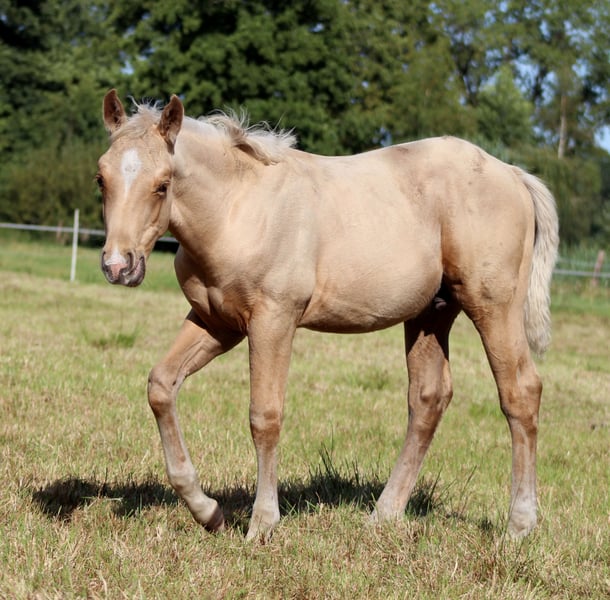 **Verkaufsanzeige: American Quarter Horse Hengst** Zum Verkauf steht ein vielversprechender American Quarter Horse Hengst, geboren im Jahr 2025. Dieser elegante Palomino zeichnet sich durch sein charmantes Wesen und seine hervorragenden Reining-Fähigkeiten aus. **Merkmale:** - **Rasse:** American Quarter Horse - **Geschlecht:** Hengst - **Geburtsjahr:** 2025 - **Farbe:** Palomino - **Ensstockmaß geschätzt :** 151 cm - **Disziplin:** Reining Er kann gerne zur weiteren Aufzucht bei uns bleiben (monatliche Kosten für Unterbringung und Futter 100€). Unser Hengst hat das Potenzial, sowohl im Sport als auch als Freizeitpartner zu begeistern. Er ist gut erzogen, umgänglich und zeigt bereits viel Talent. Bei Interesse oder weiteren Fragen stehe ich Ihnen gerne zur Verfügung. Lassen Sie sich diese Gelegenheit nicht entgehen, einen außergewöhnlichen Partner für sich zu gewinnen! Er besitzt einen Equidenpass der DQHA und COR der AQHA. Wurde regelmäßig entwurmt und dem Hufschmied vorgestellt. NRHA Germany SSP NRHA Belgium Sire & Dam nominiert (über Sire) EURO Futurity/Derby nominiert Bei Interesse freuen wir uns auf Ihre Kontaktaufnahme, um Ihnen weitere Informationen zu geben und einen Besichtigungstermin zu vereinbaren. www.white-diamond-horses.de