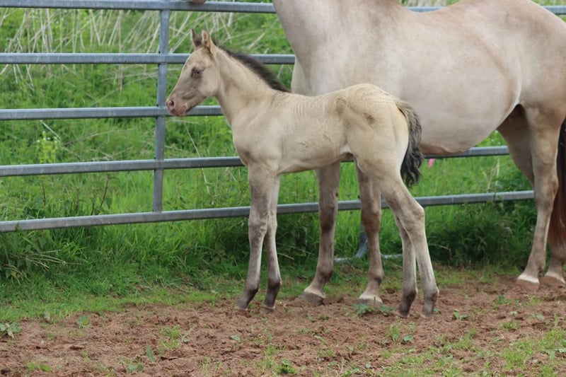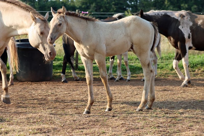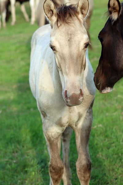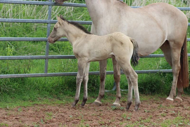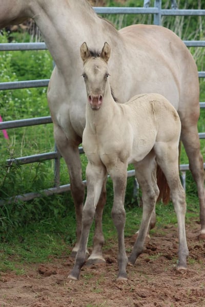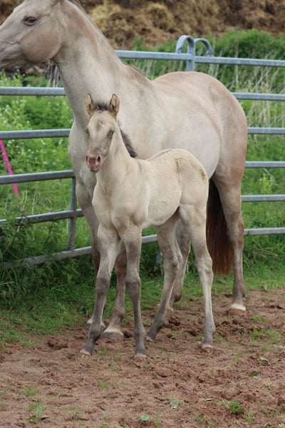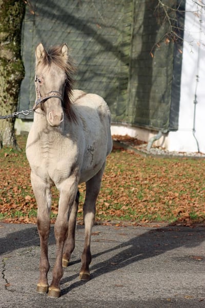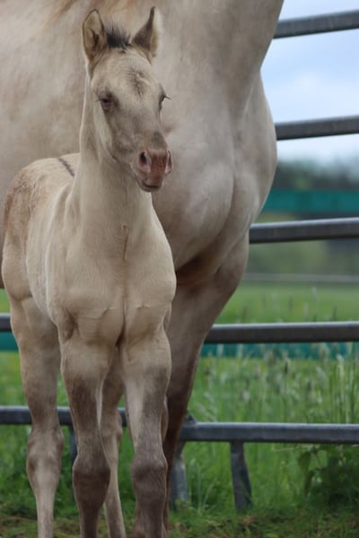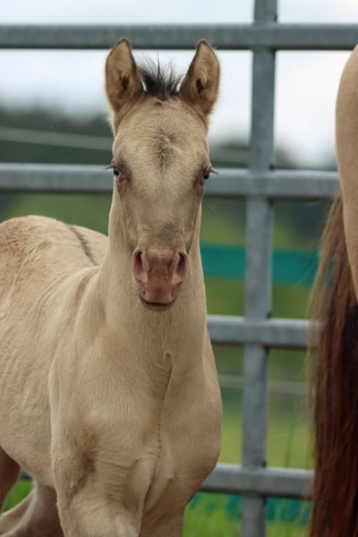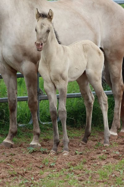 CHEYENNES VUDU KING Classic Dun Champagne AQHA Hengst Homozygot Black Geboren: 27.04.2025 Engrösse ca 152 cm 7 Panel N/N EE aa Dd CHch