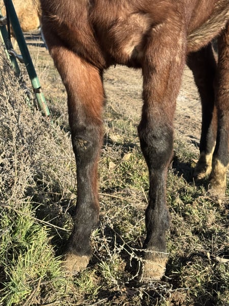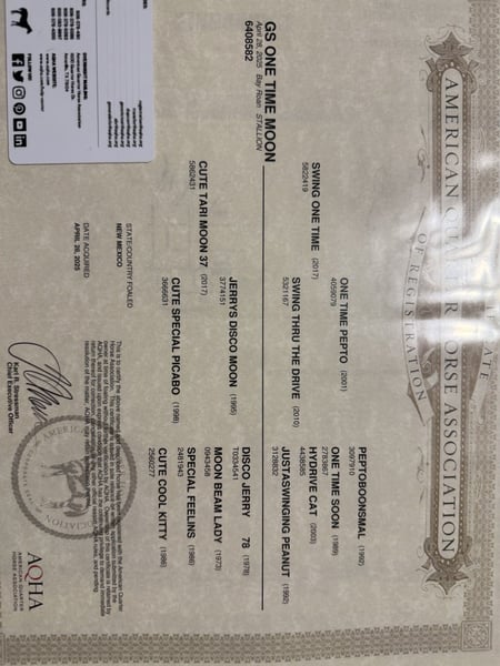 GS One Time Moon 2025 Bay Roan Colt This kid is thick and will be a showstopper. He should mature to 15hh and will be a wide guy. He is UTD on vaccines and worming. He is intact as he is not quite a year old. He will make an incredible stud prospect. He was born with an umbilical hernia that we had surgically corrected, we have been told that will not affect him. He will stand tied and trailer (he takes his time). Contact with any questions.
