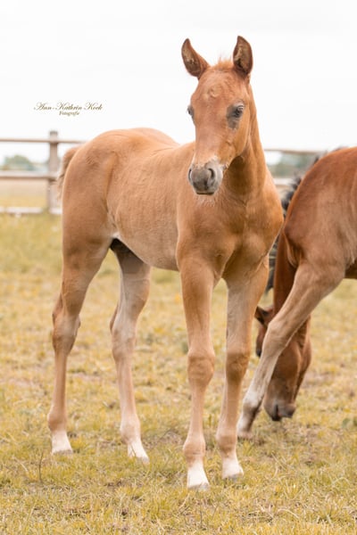 Feivel is a very typical foal by Dun It For Whizkey (earnings: $256,000) out of a shown mare. Feivel is an open-minded and brave guy, is halter-trained, and is absolutely easy to handle. He is growing up in a natural environment with a large mare/foal herd. For more information, feel free to message me.