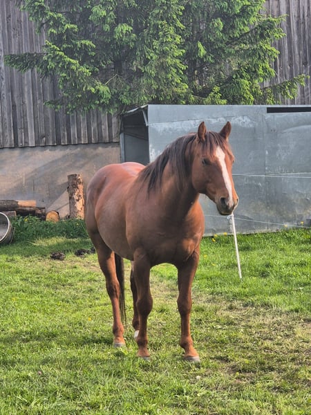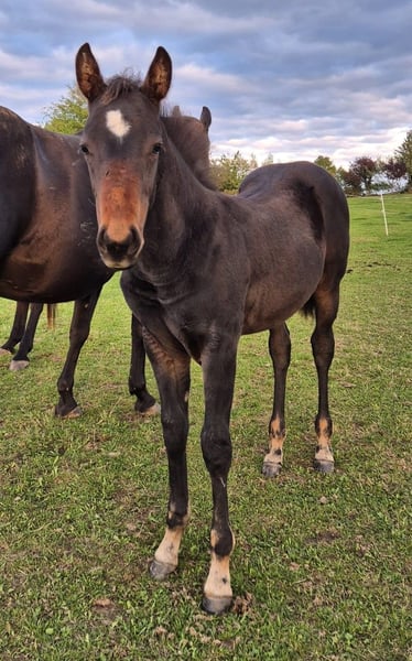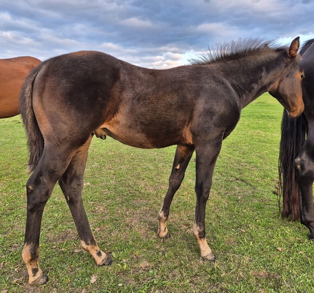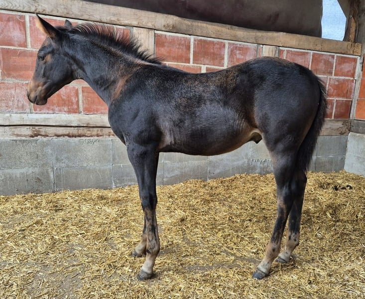 Verkaufe American Quarter Horse Hengst – Schwarzbraun, Geburtsjahr 2025 Zum Verkauf steht ein vielversprechender American Quarter Horse Hengst, geboren im Jahr 2025. EleganteS, korrektgebautes Hengstfohlen. Pancho hat eine tolle Bewegungsqualität und sein Charakter lassen auf eine erfolgreiche Zukunft im Reining oder anderen Disziplinen schließen. Er wächst zusammen mit seinem Halbbruder in einer Stutenherde auf. 24/7 Koppel mit Offenstall. Pancho wird täglich gehändelt. Das letzte Bild zeigt seinen Vater. Bei Interesse und für weitere Informationen stehe ich gerne zur Verfügung. Diese Gelegenheit sollten Sie nicht verpassen!