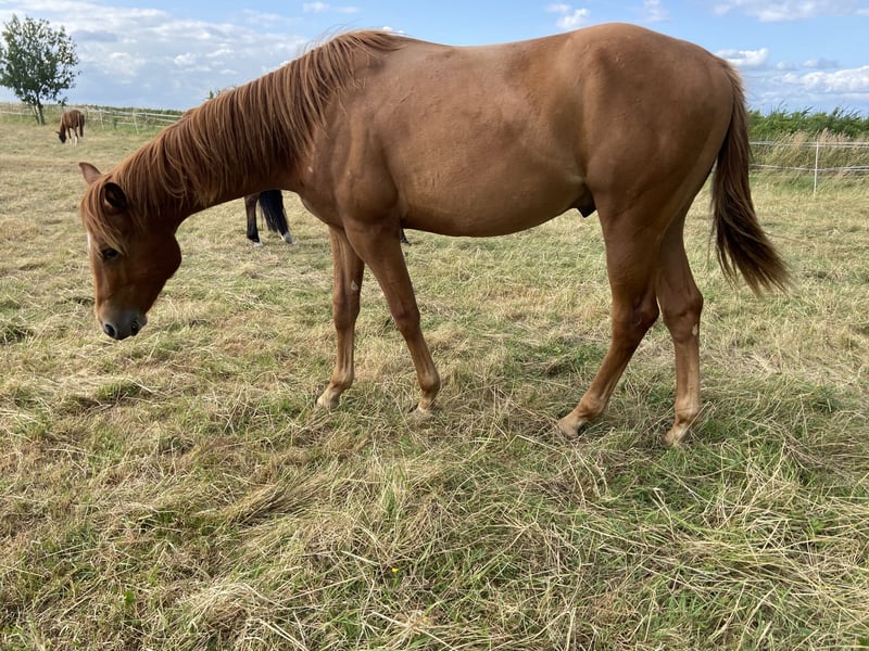 - Geb. 14.04.24 - altersgemäß erzogen - unerschrocken und lieb - freundlich und interessiert - Endgröße um die 160 cm - schöner Bewegungsablauf - TOP Abstammung (Nite Chip, With Technique, Investing Wiseley, Dynamic Deluxe) - tolle Ausstrahlung - sehr korrekt gebaut - schöne Halsung - schöne Farbe mit richtig viel Behang - sehr gelehrig Dieser feine Kerl wächst zusammen mit seinen Kumpels auf schönen Sommerwiesen auf. Geboren wurde er bei uns in einem kleinen, liebevoll geführten Stall. Täglichen Umgang im Stallalltag ist er gewöhnt und macht alles ganz selbstverständlich mit. Auch das Hänger fahren kennt er schon. Er zeigt sich aufgeschlossen und unerschrocken mit sehr schönem Bewegungsablauf und der Abstammung entsprechendem Potenzial. Schon als Saugfohlen zeigte es sehr schön flach gesprungene fliegende Wechsel. Er wird ganz sicher einmal ein toller Partner für Freizeit und/oder Turnier. Wir würden ihn zum Herbst hin legen lassen, er könnte nach Absprache noch zur weiteren Aufzucht bleiben. Kennenlernen ist erwünscht ☀️