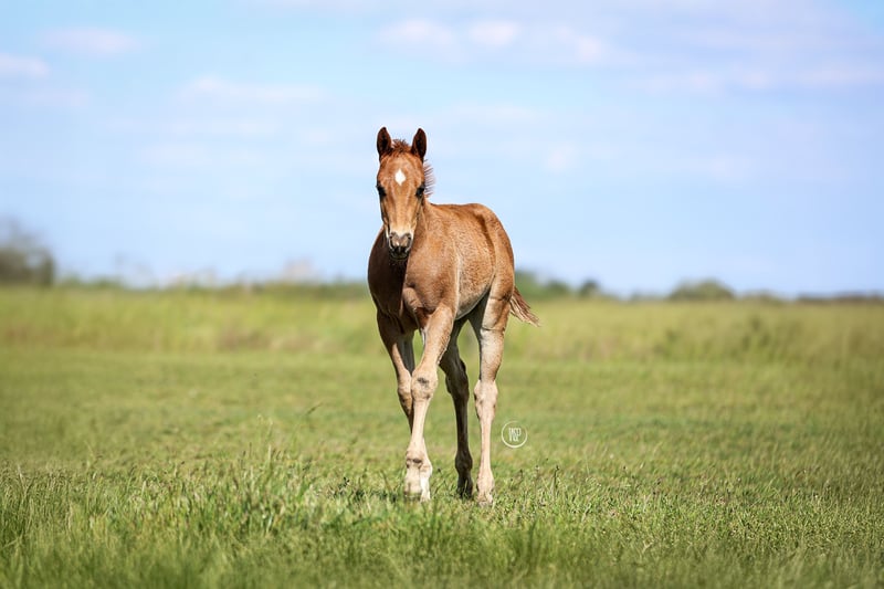 Il est né le 22 mars 2025. Mère : Guns N Rosies (Lil Joe Cash x Gunner) Père : Dun Ok Dun (LTE : 22 462 $) En raison de son lignage, il pourrait faire un excellent prospect en reining. Le pedigree AQHA et le passeport équin sont en attente.