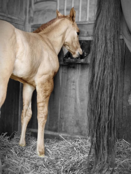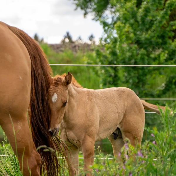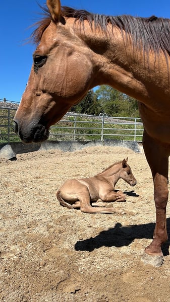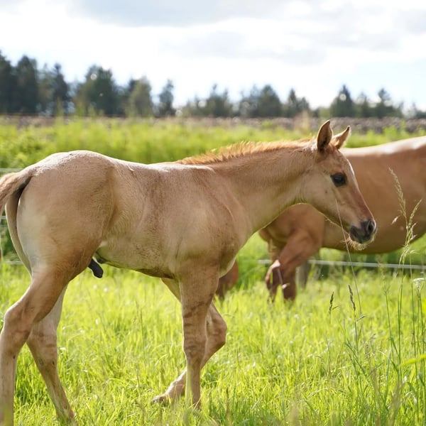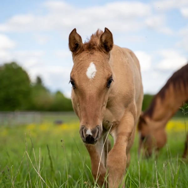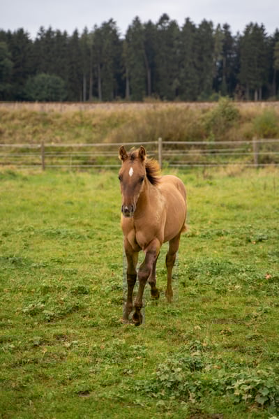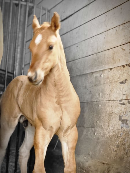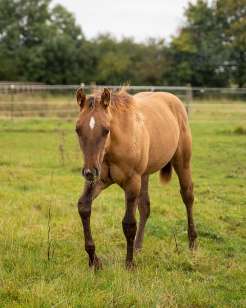 For sale is a promising American Quarter Horse stallion, born in April 2024. This young Red Dun stallion with zebra stripes on his front legs already impresses with his compact muscle packs. He will probably be 150 cm tall and is sure to be a versatile partner in Western Allround. His half-sister, 8 years old, is characterized by her people-oriented nature and her all-round abilities, whether reining, trail, ranch riding or cross-country, she is a great leisure partner. We are sure that "OLENAS DUN IS A GUN" aka Rudi will develop just as well. He not only impresses with his eye-catching color, but also with his friendly nature. Ideal for ambitious riders who are looking for a talented partner for various western disciplines. Rudi will be weaned at the end of November and can stay with us for further breeding. Both parents can be viewed. If you are interested or would like further information, please contact us.