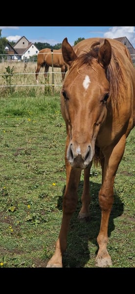 Se vende un prometedor semental American Quarter Horse, nacido en abril de 2024. Este joven semental Red Dun con rayas de cebra en las patas delanteras ya impresiona con su compacto físico musculoso. Su alzada se estima en 150 cm y seguramente será un compañero versátil en el Western Allround. Su media hermana, de 8 años, se destaca por su carácter amigable y sus habilidades versátiles, ya sea en Reining, Trail, Ranch Riding o en el campo, es una excelente compañera de ocio. Estamos seguros de que "OLENAS DUN IS A GUN", también conocido como Rudi, se desarrollará igualmente de manera excelente. No solo destaca por su color llamativo, sino también por su carácter amistoso. Ideal para jinetes ambiciosos que buscan un compañero talentoso para diversas disciplinas del Western. Rudi será destetado a finales de noviembre y puede quedarse con nosotros para su posterior crianza. Ambos progenitores se pueden ver. Si está interesado o necesita más información, no dude en ponerse en contacto con nosotros.