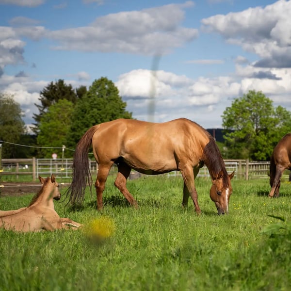 È in vendita un promettente stallone American Quarter Horse nato nell'aprile 2024. Questo giovane stallone Red Dun con strisce zebrate sulle zampe anteriori colpisce già per la sua compatta muscolatura. Sarà probabilmente alto 150 cm e sarà sicuramente un partner versatile nel Western Allround. La sua sorellastra di 8 anni si distingue per il suo carattere orientato alle persone e per le sue capacità a tutto tondo: reining, trail, ranch riding o cross-country, è un'ottima compagna per il tempo libero. Siamo certi che anche "OLENAS DUN IS A GUN", alias Rudi, si svilupperà altrettanto bene. Non solo colpisce per il suo colore accattivante, ma anche per la sua natura amichevole. Ideale per cavalieri ambiziosi che cercano un partner di talento per varie discipline western. Rudi sarà svezzato alla fine di novembre e potrà rimanere con noi per un ulteriore allevamento. Entrambi i genitori sono visibili. Se siete interessati o desiderate ulteriori informazioni, contattateci.