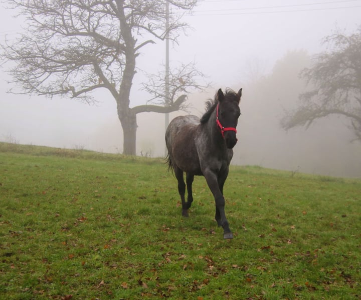 Wimpys Dunit Twisten ist ein äußerst attraktiver Quarter Horse Hengst, geboren am 29.04.2024. Er ist blue roan und wird voraussichtlich ein Endmaß von etwa 147 bis 150 cm erreichen. Mit seinem korrekten Gebäude, seiner kompakten und kräftigen Statur sowie seiner guten Bemuskelung überzeugt er bereits jetzt auf ganzer Linie. Der Hengst ist gesund und über die Eltern 5-Panel sowie IMM n/n getestet. Er wächst artgerecht im Herdenverband gemeinsam mit anderen Jungpferden auf und wird täglich gehändelt. Bei Abgabe kennt er Tierarzt und Hufschmied, ist regelmäßig entwurmt. Selbstverständlich beherrscht er das Fohlen 1x1. Charakterlich zeigt sich Wimpys Dunit Twisten von seiner besten Seite. Er ist sehr lieb, verschmust und unkompliziert im Umgang. Mit seiner coolen Art erkundet er neugierig die Welt, liebt seine Kuscheleinheiten und überzeugt durch seine Ausgeglichenheit und Menschenbezogenheit. Als toller Beweger mit guter Abstammung ist er sowohl für den Sport- und Turnierbereich als auch für die Freizeit bestens geeignet. Die Abgabe erfolgt mit AQHA-Papieren sowie Equidenpass.
