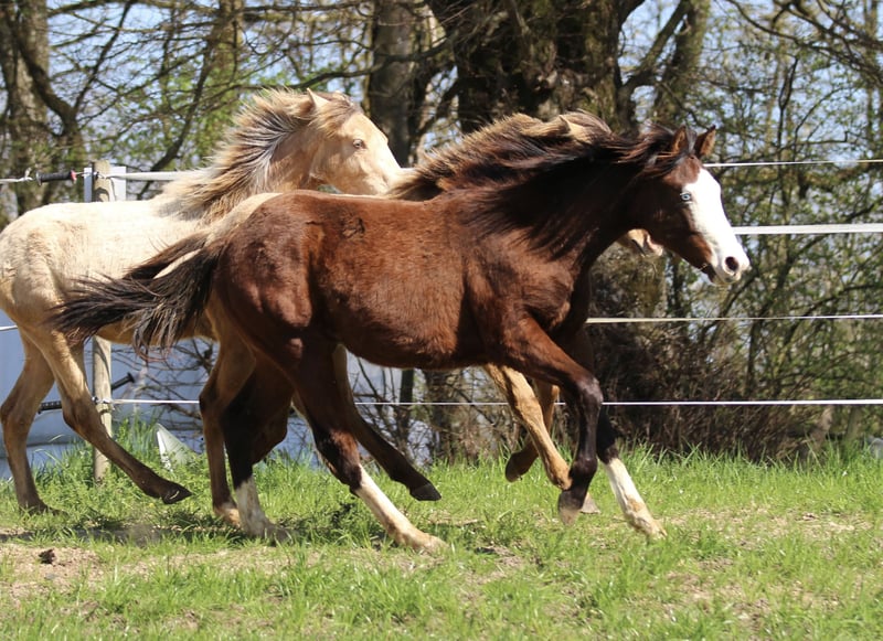 HOLLYWOOD MOBSTER aka Joe ist ein freundlicher und aufgeweckter junger Kerl. Er ist sehr menschenbezogen und anhänglich. Wird mal einen tollen Partner für Freizeit und Sport geben. Aufgrund seines kräftigen Rahmens auch für größere Reiter perfekt geeignet. Seine Bewegungen sind sehr athletisch, hat jetzt schon bereits einen super Stop. An der DQHA Fohlenschau wurde er mit 82,64% super bewertet und erreichte bei der Stellung sogar 89,81%! Beste Voraussetzungen für ein klasse Reitpferd sind gegeben. Vater: The Mobs Capone Mutter: Dun it Hollywood (Hollywood Dun it x Great Pine)