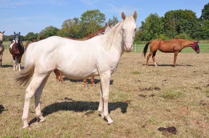 Er wächst im gemischten Herdenverband auf , ist geimpft und wurde regelmäßig entwurmt.