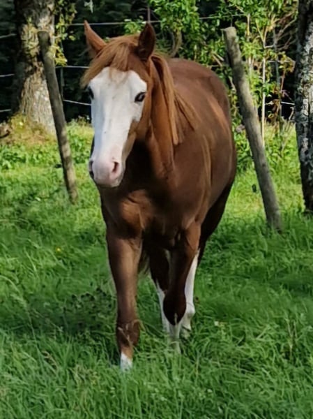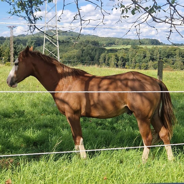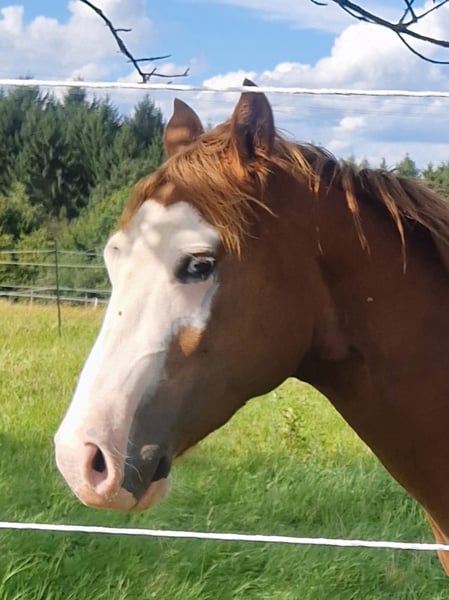 Bardzo spokojny młody ogier, na życzenie również jako wałach, ze względu na rodzinne okoliczności w atrakcyjnej cenie! Priorytet nad ceną! Urodzony w 2023 roku, bez defektów genetycznych (test panelu 8-liniowego wszystkie N/N), poprawnie zbudowany, elastyczne ruchy i świetny, zrelaksowany charakter! Zna podstawy pracy na ziemi z prostymi przeszkodami trailowymi, jest też kowalowłosy i bez problemu można go załadować do przyczepy! W rodowodzie znajdują się amerykańskie i włoskie reproduktory reining, a także wszechstronne konie najwyższej klasy! Ma podwójne papiery, jest zarejestrowany jako quarter horse oraz paint horse, co daje mu również podwójną możliwość startu! Dalsze informacje chętnie udzielę pod numerem: 0177-2002275