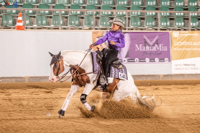 À vendre, un impressionnant étalon American Quarter Horse, né en 2019. Avec une taille au garrot de 148 cm, il est un partenaire compact et agile, idéal pour le reining et d'autres disciplines. Cet étalon se distingue par son jeu de couleurs Tobiano saisissant, qui en fait un véritable point d'attraction. À vendre en raison d'un manque de temps. Il est bien éduqué, gentil dans le handling et a déjà acquis ses premières expériences en reining. Son potentiel est prometteur et il attend de démarrer avec un nouveau cavalier. Pour toute question ou intérêt, je suis à votre disposition. Les visites sont possibles sur rendez-vous.