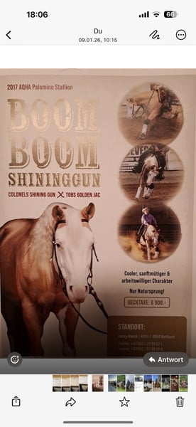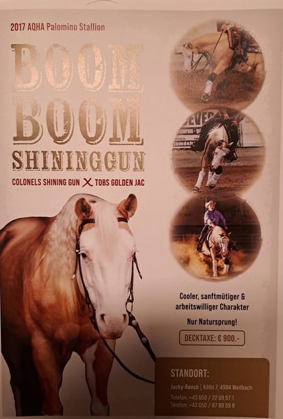 Stunning Palomino American Quarter Horse Hengst zu verkaufen! Dieser beeindruckende Hengst, geboren im Jahr 2017, vereint kraftvolle Leistung mit eleganter Erscheinung. Mit einer Höhe von 142 cm ist er perfekt für Reining und zeigt beeindruckende Beweglichkeit sowie ein ausgeprägtes Talent für die Disziplin. Sein glänzendes Palomino-Fell macht ihn zu einem echten Blickfang im Stall und auf dem Turnierplatz. Er ist gut ausgebildet, zuverlässig und besitzt ein freundliches Wesen, das sowohl erfahrenen Reitern als auch ambitionierten Einsteigern Freude bereitet. Seine Vielseitigkeit und sein Potenzial im Reining machen ihn zu einem wertvollen Partner für alle, die ihre Karriere in diesem Sport vorantreiben möchten. Bei Interesse oder weiteren Fragen stehe ich Ihnen gerne zur Verfügung. Ein persönliches Kennenlernen ist jederzeit möglich!