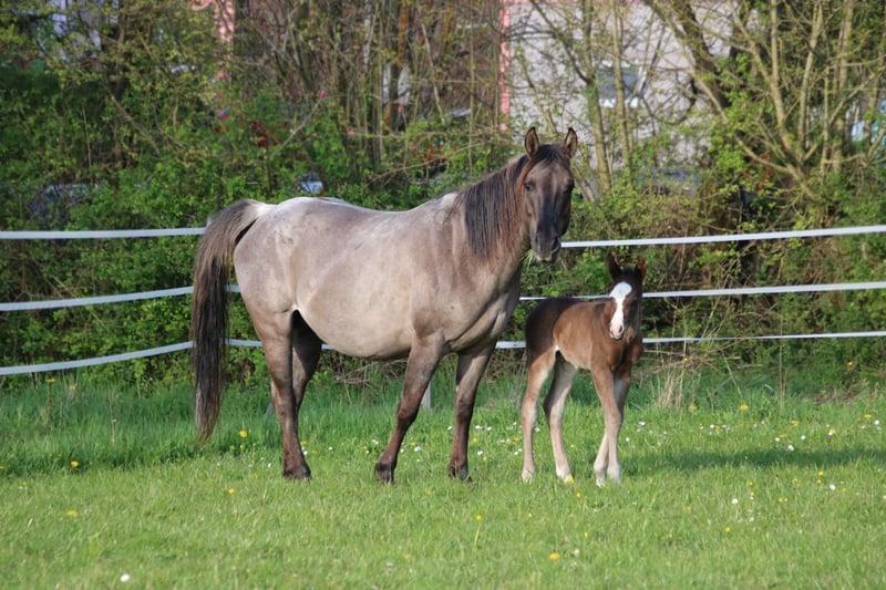 BE My Blue Ice, geboren am 15.04.2026, ist ein bildhübsches Quarter Horse Hengstfohlen in der Farbe Bay mit einem zu erwartenden Endmaß von ca. 147 bis 150 cm. Mit seiner außergewöhnlichen Zeichnung und seinem ausdrucksstarken Erscheinungsbild ist er bereits jetzt ein echter Blickfang. Er überzeugt durch einen korrekten, kompakten und kräftigen Körperbau sowie eine sehr gute Bemuskelung. Seine Bewegungen sind locker, elastisch und von Natur aus sportlich - beste Voraussetzungen für eine spätere Karriere im Reining- oder Allround-Sport. Charakterlich zeigt sich BE My Blue Ice besonders angenehm: freundlich, verschmust, cool und stets unkompliziert im Umgang. Er wächst artgerecht im Herdenverband mit anderen Fohlen auf und wird regelmäßig gehändelt, sodass er bei Abgabe das Fohlen-ABC sicher beherrscht. Seine sehr gute Reining- und Allround-Abstammung (Spooks Gotta Gun x Joe Cougar Hancock) macht ihn sowohl für ambitionierte Turnierreiter als auch für den gehobenen Freizeitbereich hochinteressant. Gesundheit und Aufzucht stehen an erster Stelle - bei Abgabe ist er tierärztlich betreut, dem Hufschmied vorgestellt und regelmäßig entwurmt. Die Abgabe erfolgt selbstverständlich mit AQHA-Papieren und Equidenpass. Ein Youngster mit Qualität, Ausstrahlung und bestem Charakter - ideal als zukünftiges Sport- oder Freizeitpferd mit Perspektive.