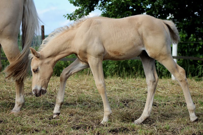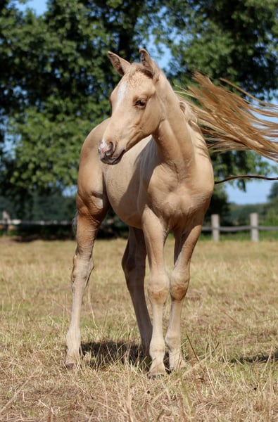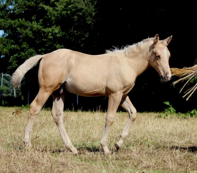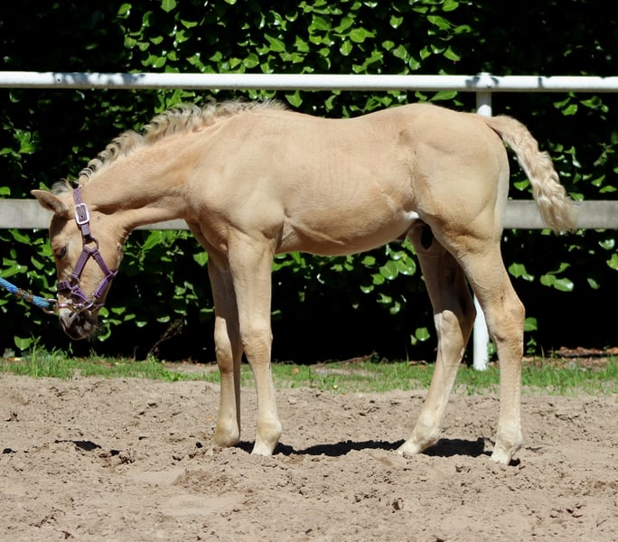 **Verkaufsanzeige: American Quarter Horse Hengst** Zum Verkauf steht ein vielversprechender American Quarter Horse Hengst, geboren im Jahr 2025. Dieser elegante Palomino zeichnet sich durch sein charmantes Wesen und seine hervorragenden Reining-Fähigkeiten aus. **Merkmale:** - **Rasse:** American Quarter Horse - **Geschlecht:** Hengst - **Geburtsjahr:** 2025 - **Farbe:** Palomino - **Ensstockmaß geschätzt :** 151 cm - **Disziplin:** Reining Unser Hengst hat das Potenzial, sowohl im Sport als auch als Freizeitpartner zu begeistern. Er ist gut erzogen, umgänglich und zeigt bereits viel Talent. Bei Interesse oder weiteren Fragen stehe ich Ihnen gerne zur Verfügung. Lassen Sie sich diese Gelegenheit nicht entgehen, einen außergewöhnlichen Partner für sich zu gewinnen!