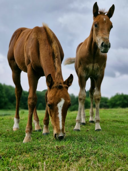 Ranch Horse trifft auf Cow Horse❤️ Frederick ist am 20.04.2025 geboren. In schicker chestnut Farbe überzeugt er mit seiner Coolness und seinem unkomplizierten Wesen Er kennt das Fohlen ABC, ist regelmäßig entwurmt, seine Papiere und Equidenpass sind beantragt Er wächst im Herdenverband im Offenstall auf, kennt Hunde und Kinder Endmaß ca 1,52m Über die Eltern N/N (könnte HERDA Einzelgenträger sein) Standort: 18574 Gustow ( Insel Rügen)