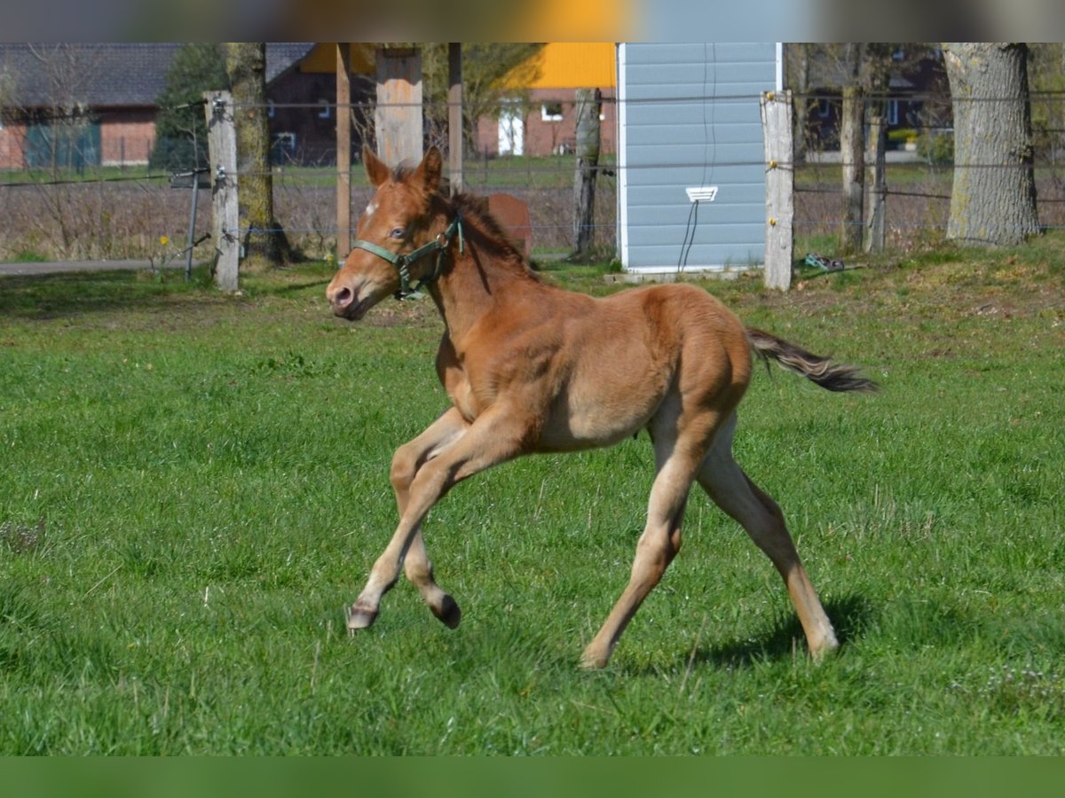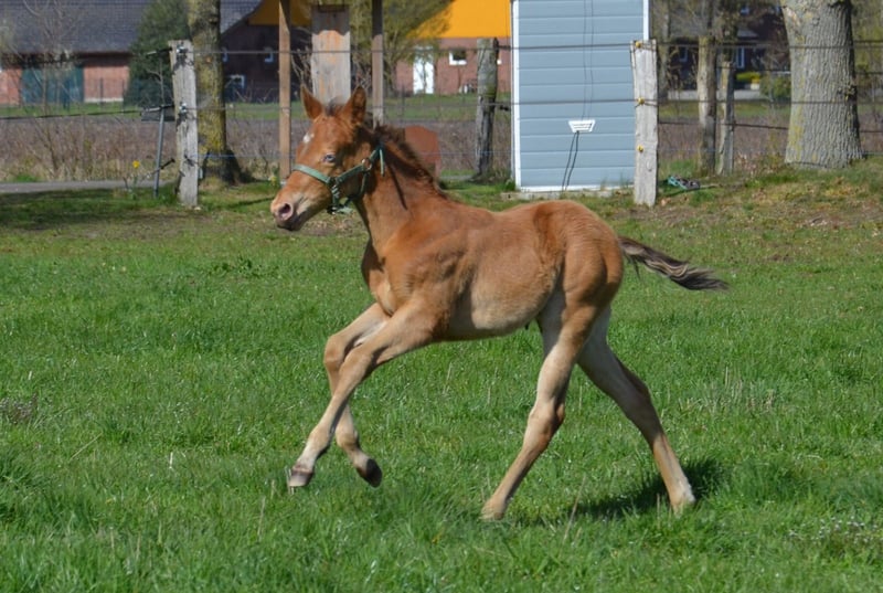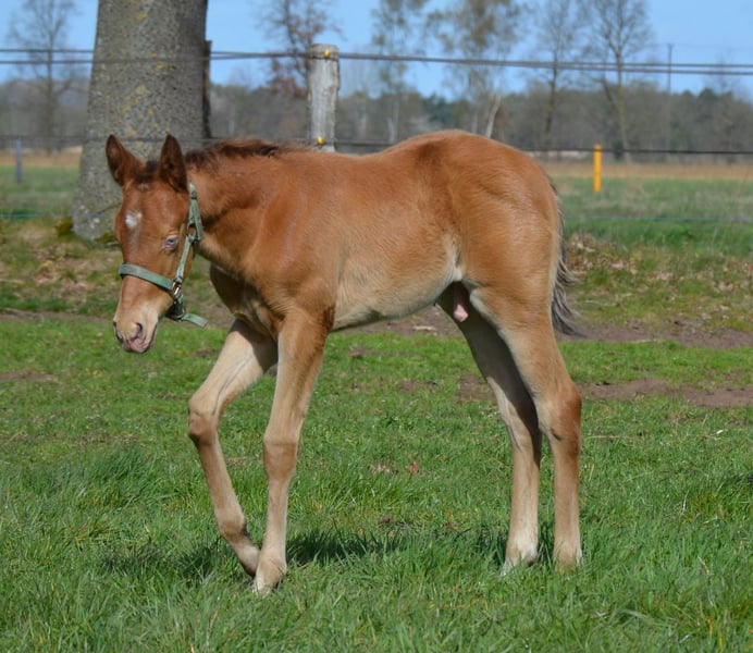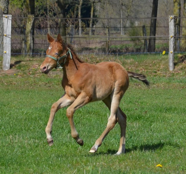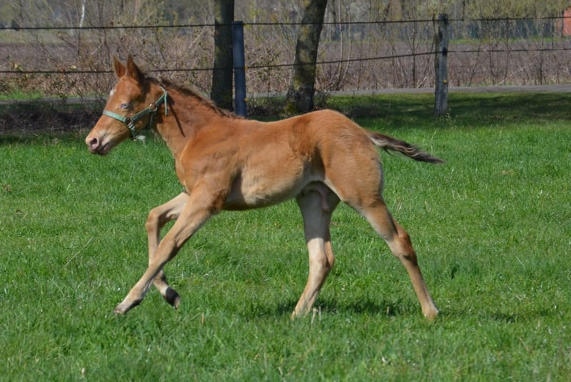 Dieser junge Mann wurde am 16.03.2026 geboren. Er hat das Champagne Gen von seinen Vater geerbt. Wächst in Fohlengesellschaft auf. Hat einen tollen Body. Endmass um die 155 cm Die blauen Augen werden verschwinden, er wechselt in Beerensteinfarbend um. 5 panel durch die Eltern ( pssm1, gbed, mh, herda, hypp) Er darf mit 6 Monaten ausziehen. Vater Dc Cool Goodys Champ Ein Quarter Horse Hengst mit top Charakter Er war mit mir auf der Equitana und auf weiteren Messen unterwegs. Stockmass 154 cm Mutter Haidas Cranbar Lena Eine grossramige Quarter Horse Stute. Stockmass 155 cm 5 panel nn Hat noch Peppy san Badger und Doc o Lena auf dem Papier. Der Vater Ch Cool Goodys Champ steht bei uns am Hof