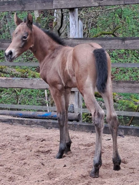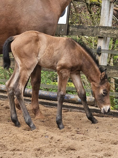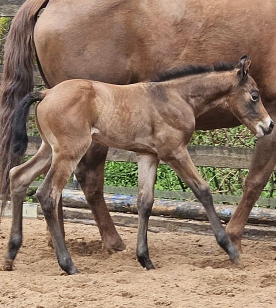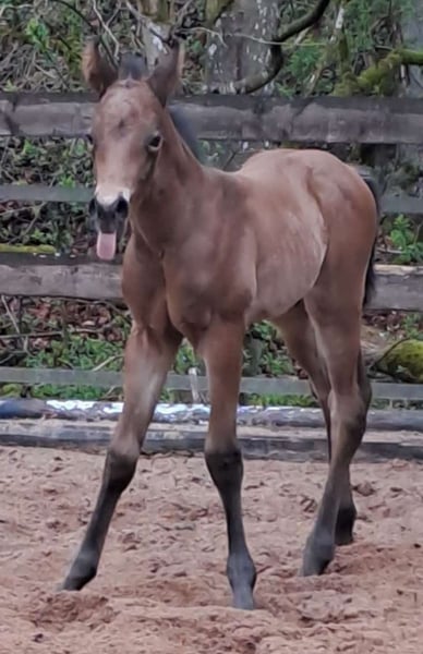 "Mogli" ist ein verschmuster Charmeur der seinen Menschen sucht. Geb. 08.04.2026 One Martini Please x My Privatchocolat Super schickes Fohlen für den Allround Bereich. Halbgeschwister laufen bereits erfolgreich im Sport. Wöchst im gemischten Herdenverband auf, regelmäßig Wurmkur und Hufbearbeitung. Lernt das Fohlen ABC. AQHA Papiere und E-Pass.