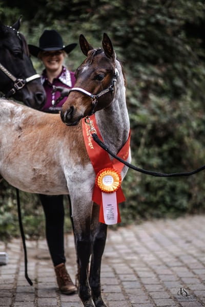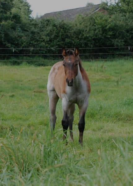 AQHA Colt – Bay Roan – "Peanut" Pleasure & Allround Prospect with Top Pedigree On April 26, 2025, our Hazel gave birth to a very special colt: Peanut – a beautiful, correctly built Bay Roan with great presence, clear movements, and a friendly yet brave temperament. Even in his first days, Peanut is showing his expressive gaits, a lot of balance, and remarkably good transitions. He has the talent to develop into a promising Pleasure and Allround horse for higher-level competition. He will surely also be interesting for Western Riding – he transitions very flat and cleanly. Peanut is already loading well into the trailer, walks along the main road, is familiar with all kinds of motorized equipment, and bathing is also no problem. He has also mastered his first farrier appointment with flying colors. He is super unflappable, brave, and very people-oriented. Pedigree: Peanut is sired by You Rock My World (1.60 m) × TFR A Goodbar Deluxe (1.54 m). A look at his pedigree speaks for itself: The Rock, RL Best Of Sudden, Ive Got Good Credit, Dynamic Deluxe, and Assets Good Rebel – all wishes are fulfilled here. Raising & Care: Peanut is being raised in a species-appropriate manner on spacious pastures in summer and dry areas in winter. Mother and foal are regularly dewormed and provided with high-quality minerals and vitamins. The well-being of our animals is our top priority, and nothing is spared! Further Information: Born: April 26, 2025 Color: Bay Roan Insured (Life & Surgery) Available from around November (after careful weaning), but he can stay longer by arrangement. Hazel, Peanut's mother, is 6 years old, healthy, people-oriented, and absolutely reliable – so much so that my little niece was already able to ride her safely at the age of 4. At the North Futurity 2021, she already achieved success as a two-year-old: Reserve Futurity Champion 2yo Halter Reserve Futurity Champion Longe Line NSBA 2yo Longe Line AQHA 2yo Trail in Hand 5th Placings in Junior Pleasure, but due to my lack of time, she was not presented further. Peanut is an ideal young horse for sport and leisure with charm, quality, and the best foundation. If you are seriously interested, we look forward to a personal message or a call! It is definitely about space before price – we can surely come to an agreement here.
