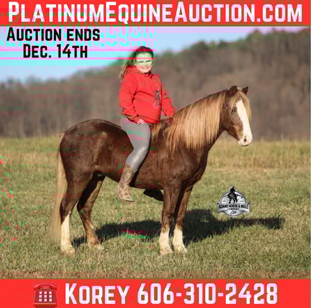 ONLINE AUCTION Place your bids at www.PlatinumEquineAuction.com Starting Bid $3500 Auction ends December 14th, 2025 Need a new saddle? Check out White Rock Saddles on our website or Facebook It seems like you can never find what you need when you need it… Christmas is here and you need a kid tested, kid safe pony and you need it ASAP!!! Its your lucky day…. King Henry is standing around 12h, he is 9 years old, a beautiful red chestnut roan, Gelding and if you are looking for a horse that will bring countless smiles, miles of memories and nothing but good times in the saddle… then Henry is the guy that you have been looking for. He has been one of our 7-year-old’s favorite ride all summer long, and he has been tested over and over again, passing with flying colors every time! This guy loves attention and likes to be pampered! From braids to baths, he loves his time with his kids! He is totally gentle for the kids to ride and will go anywhere that they ask him to go whether that be alone or with a group. Henry never raises a fuss!! Henry is a phenomenal trail horse and covers any terrain. He has been ridden up/down steep slopes, across creeks, ditches, deadfall, rough rocky areas… you name it, and he can handle it. He rides with confidence, will go out alone, will ride in the front or back of the group and leaves the barn with no issues. He is traffic safe and has been ridden through town. He lopes nice circles, has a good stop and is easy to operate. He has been ridden around the ranch and through the cows. Henry has had a rope throw off of him and has tracked the roping dummy just for fun while the kids rope. Henry the horse that will get your kids set on the right path with confidence, will keep that smile on their faces and they will enjoy him for years to come! For more info call Korey Patrick 606-310-2428 with any questions or to make a buy it now offer. We can get transportation arranged to anywhere in the US so that Henry can be under the Christmas tree!!! ONLINE AUCTION Place your bids at www.PlatinumEquineAuction.com Starting Bid $3500 Auction ends December 14th, 2025 Need a new saddle? Check out White Rock Saddles on our website or Facebook