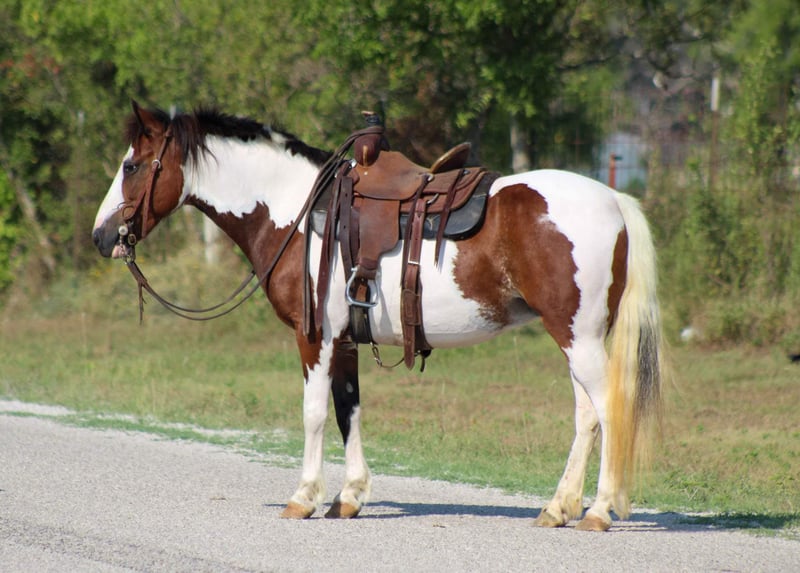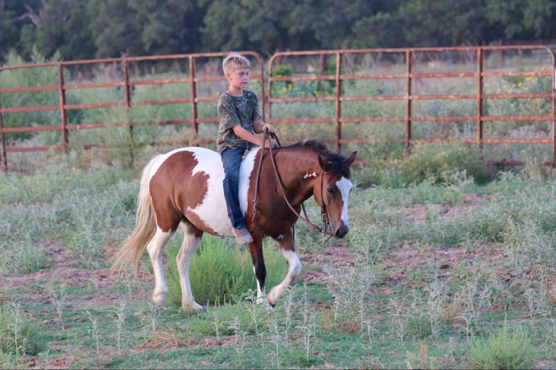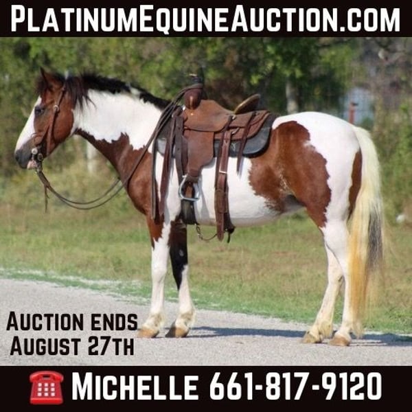 ONLINE AUCTION Place your bids at www.PlatinumEquineAuction.com Starting Bid $3500 Auction ends August 25th, 2024 Need a new saddle? Check out White Rock Saddles on our website or Facebook! Let me introduce to you the cutest little brokest pony around ! Everyone meet Cake Pop she is a 8 year old paint pony mare standing 12 hds tall and as wide as she is tall . She spent most of her life being rode by Amish kids she has done and seen it all . They used Cake Pop to ride to school on and all over the farm . Shes the perfect age for your kids to grow up with and will last them a lifetime . She has been rode all over the ranch checking cattle , penning back cattle at the sale barn and knows what a long days work is . She will walk , trot and lope circles . Cake Pop is one of the broker ponys around and will ride like a big horse , she is cowy and loves to work cows. She has been on many trails from the Famous Fort Worth Stockyards to the National Parks . She has been trail rode in many states including Missouri ,Texas , Arkansas and Oklahoma. She will cross water, bridges, tarps, brush, she’s seen many wildlife, been rode in crowds of people and heavy traffic and doesn’t bat an eye. Shes a confident and brave pony. Shes the pony your kids can ride around bareback all day long, she stands to tack up, for mounting with no issues at all . She loads and unloads , stands for the farrier and is currently barefoot . Cake Pop is an easy keeper also . Shes a super sweet little mare that won’t disappoint. Contact us to come try her , or we can set up a FaceTime also. If you need help with transport don’t hesitate to ask we have a list of reputable haulers that can get her safely to your doorstep world wide. Call M$ Performance Horses Michelle 661-817-9120 Located in Stephenville, TX. ONLINE AUCTION Place your bids at www.PlatinumEquineAuction.com Starting Bid $3500 Auction ends August 25th, 2024 Need a new saddle? Check out White Rock Saddles on our website or Facebook!