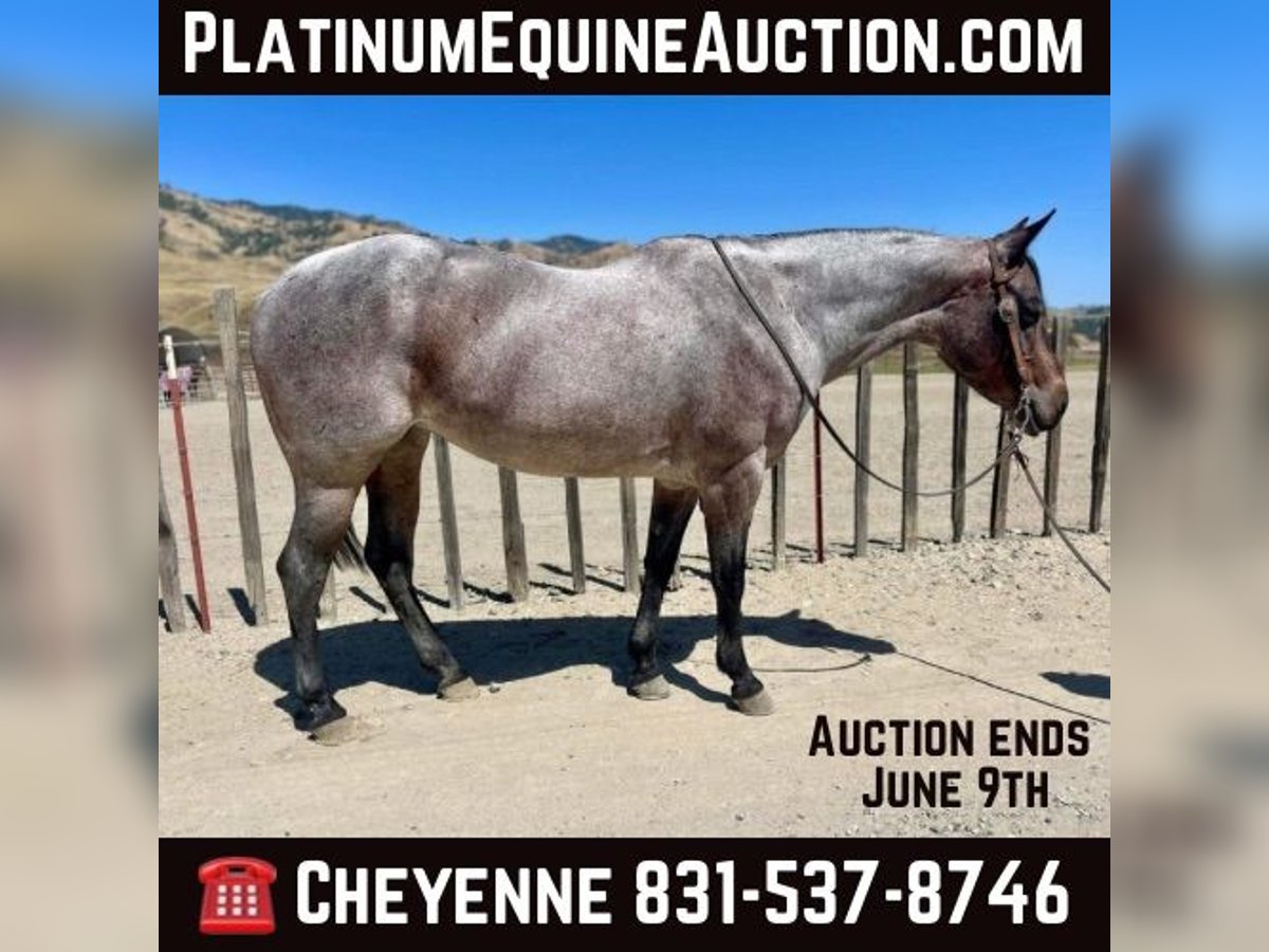 ONLINE AUCTION Place your bids at www.PlatinumEquineAuction.com Starting Bid $3500 Auction ends June 9th, 2024 Need a new saddle? Check out White Rock Saddles on our website or Facebook! Canela is a 8yr old fancy roan mare that stands exactly 14.2HH. This little doll face mare will steal your heart with her dog gentle demeanor, and fancy broke handle. Canela has an old soul and it shows. She can be trusted around kids of all ages and will take care of them on her back. She has zero spook and zero funny business. She is the safest, most honest horse you can find. She lopes pretty circles, very easy to control in the arena, one handed effortlessly neck rein. She does some fancy buttons when you ask for it. She knows how to spin each way, collect and have a nice collected stop. On the trail, she will go through or over anything you point her at without hesitation. She has been down many busy streets, as well as crowded mountain trails. She will go out alone or in a group and you can relax and have fun on her with her auto pilot mode. She has been around cattle, and other farm animals. She’s had ropes swung on her and doesn’t mind it at all. Nothing and I mean nothing phases her! Dogs, flags, tarps she will not blink an eye out. She is not a cranky mare, she has a very sweet and loving disposition. This is a user friendly mare that will suit any home. She has zero issues, she hauls great, easy to shoe, friendly in the pasture, and requires no maintenance. She will never get fresh with any amount of time off. She is as honest as you will find for a young aged horse! She is located in Bitterwater, CA. For more info contact Cheyenne Rey 831-537-8746. ONLINE AUCTION Place your bids at www.PlatinumEquineAuction.com Starting Bid $3500 Auction ends June 9th, 2024 Need a new saddle? Check out White Rock Saddles on our website or Facebook!