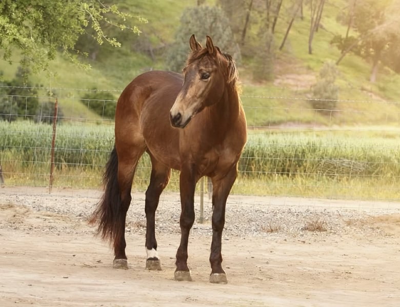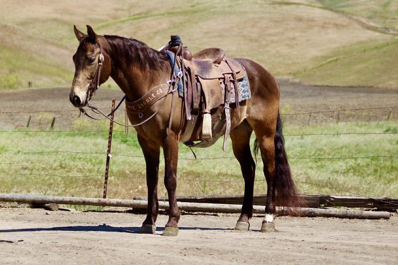 "AVAILABLE ON ONLINE HORSE AUCTION AT www DOT PlatinumEquineAuction DOT com BIDDING OPEN NOW thru SUNDAY | APRIL 19TH! *Final price will be determined on auction site* CONSIGNOR CONTACT INFO: Longhorn Ranch 831-537-1915 LOCATION: Paicines, CA CLYDE 10-Year-Old Buckskin Gelding • 14.3 Hands Good horses don’t need a lot of explaining—and Clyde is one of them. Clyde is a striking 10-year-old dark sooty buckskin standing 14.3 hands, with rich color, dark points, and a kind, steady expression that makes you feel comfortable right from the start. He’s the kind that doesn’t need any fuss—you get on him and he just makes sense. This gelding is the definition of handy and dependable—the kind everyone’s hoping to find and the kind that’s hard to replace. Clyde has been enjoyed on the trails, used for light ranch work with cows, and ridden in all kinds of country. He’s steady, relaxed, and carries himself with a quiet confidence that makes every ride easy. The kind you saddle up without a second thought… and end up riding longer than you planned. Obstacles? He’s been there, done that… and doesn’t see what all the fuss is about. Tires, logs, tarps, and anything else you want to point him at—he handles it with a level head and a willing attitude. Out on the trail, Clyde is sure-footed and happy to go wherever you point him. Rocks, hills, water crossings, wildlife—he stays honest and relaxed through it all. Whether you’re riding down the road or out in the hills, he treats it like just another easy day. He’s got a solid stop, a smooth, comfortable lope, and is coming along nicely in his turnaround with light cues. He’ll head out alone without issue and stays the same dependable partner every time. In the arena or around cows, Clyde is soft, responsive, and uncomplicated. He rides with a forgiving feel that works for a wide range of riders. And his personality is just as good as his ride. Clyde is gentle, kind-minded, and easy to be around. Easy to catch, easy to tack, and easy to enjoy. He loads, hauls, ties, and handles everyday life like he’s done it forever. No drama, no attitude, no nonsense—just a really good gelding that makes life simple… which is getting harder to find these days. Dark buckskin with eye-catching presence Gentle, steady, and easy to ride The kind that quietly becomes everyone’s favorite If you’ve been looking for a dark buckskin gelding that’s as dependable as he is good-looking, Clyde is worth a serious look. Longhorn Ranch Dina • 831-537-1915 Paicines, California Nationwide Shipping Available
