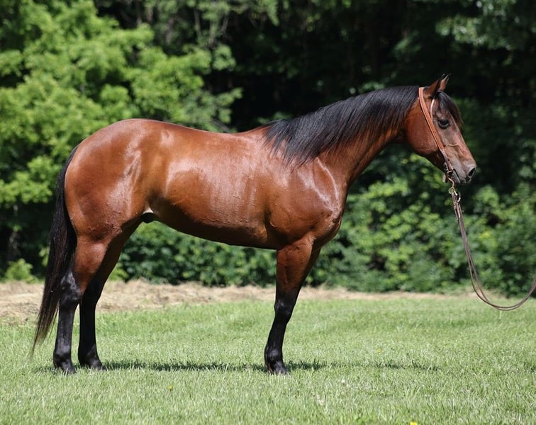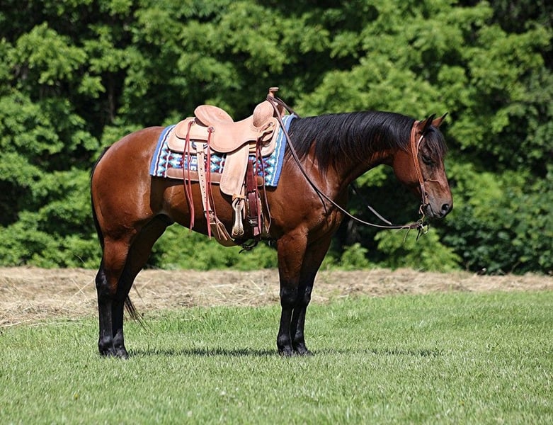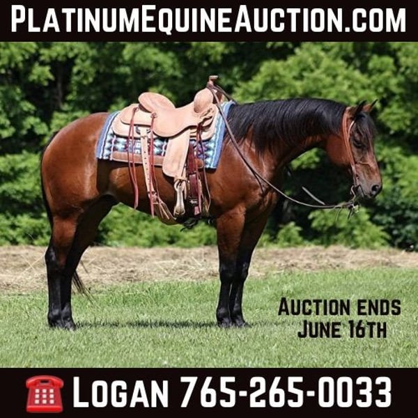 ONLINE AUCTION Place your bids at www.PlatinumEquineAuction.com Starting Bid $3500 Auction ends June 16th, 2024 Need a new saddle? Check out White Rock Saddles on our website or Facebook! Benson is a stout built 15H, 9 year old, Bay Quarter Horse Gelding. Benson is a well traveled horse that has been ridden in several states and has been used as a ranch horse in every aspect of ranch life. From herding to sorting, pasture roping and doctoring, Benson has done it all! He has worked on a feedlot and been used for roping and doctoring in addition to other ranch tasks. He has been trail ridden in several states and used at the stockyards to pen cattle on a few occassions. He will cross creeks, ditches, logs and navigate rough rocky areas. Benson is safe riding in traffic. He has a smooth jog and a nice lope! Benson has been exposed to all kinds of wildlife such as deer or turkey or other animals like cows or dogs and will go anywhere that he is asked too. He has been rode many miles in the mountains of Eastern Kentucky and encountered every obstacle possible on the trail. He will go up or down even the steepest slopes, across deep creeks, over downed trees, and over all types of rough terrain while still being sure footed. If you want to feel and look like a real deal cowboy/cowgirl just climb on Benson and he will make you look like one! If you have any questions call Moore Trained Equine Logan 765-265-0033. Located in Level Green, KY. ONLINE AUCTION Place your bids at www.PlatinumEquineAuction.com Starting Bid $3500 Auction ends June 16th, 2024 Need a new saddle? Check out White Rock Saddles on our website or Facebook!