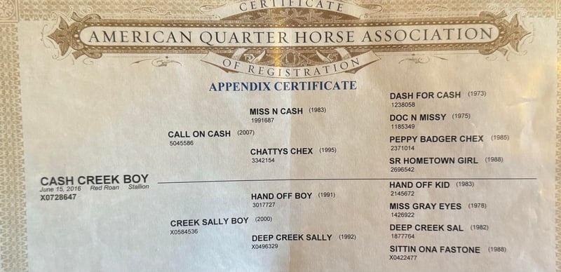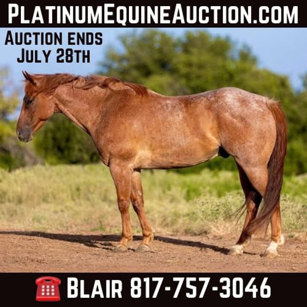 ONLINE AUCTION Place your bids at www.PlatinumEquineAuction.com Starting Bid $3500 Auction ends July 28th, 2024 Need a new saddle? Check out White Rock Saddles on our website or Facebook! Cash Creek Boy aka “Danny” is a 2016, 15H AQHA red roan gelding. If you’re looking for a blank slate to take in any direction, this is your guy! Danny is GORGEOUS, gentle, kind and willing! He has the potential to go do any job you give him! He has a nice foundation and ready to be finished out your way! He is gentle, with no buck or bad habits! Danny moves off leg, direct and neck reins, knows both leads and stops right when you ask him to! He rides inside and out with no issues! He’s not a hot horse and is very respectful of what you are asking him to do! Danny has mostly seen open ranch country and has experience pushing cows up! He hasn’t been finished out as a ranch horse or rope horse but he is a nice prospect for either! He has a great personality and is incredibly eager to please! Use him as he is as a trail horse or go finish him out and he could excel any direction you want to go. He is easy to handle in all aspects. He loads, leads, bathes, ties and gets along with everyone great. Danny is UTD on teeth and feet as well and will go to his new home ready for his next adventure! He has a nice set of papers and will make someone a nice horse any way they take him! Don’t miss this cool guy! Go to his website page northtexashorsecompany.com/cashcreekboy for more pictures and footage! Please call Blair with North Texas Horse Company for more info at 817-757-3046. We are located in Weatherford, TX and can help arrange affordable shipping to anyone!! ONLINE AUCTION Place your bids at www.PlatinumEquineAuction.com Starting Bid $3500 Auction ends July 28th, 2024 Need a new saddle? Check out White Rock Saddles on our website or Facebook!