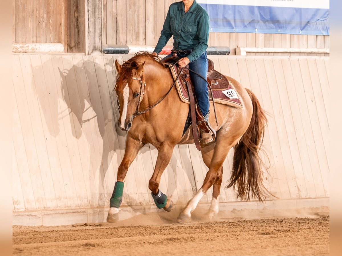 "Gino" hat gute Anlagen und professionelles Basistraining mit Ausbildungsschwerpunkt Reining. Er hat gute Eignung auch für Trail und Ranch Riding. Für Bodenarbeit ist er sensibel und aufmerksam. Einsteigerturnierstarts Reining und Ranch Riding hat er super gemeistert. Er wurde von uns im Schwerpunkt Basis und Freizeit geritten. Er hat eine super Abstammung und zeigt sich geeignet für den Sport und ambitionierte Freizeitreiter. Weitere Infos und Trainings-Videos gerne auf Anfrage. Preis ist VHB.