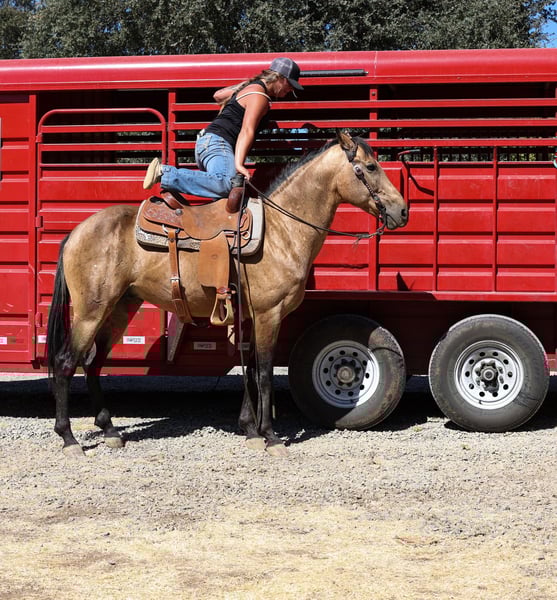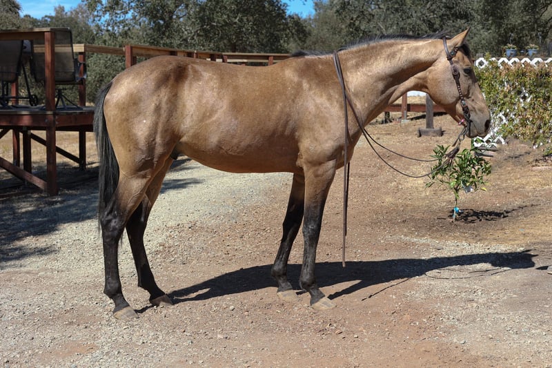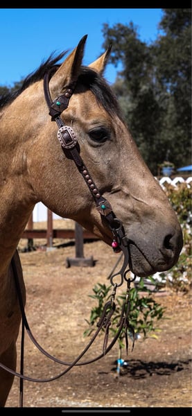 ONLINE AUCTION Place your bids at www.PlatinumEquineAuction.com Starting Bid $3500 Auction ends September 22nd, 2024 Need a new saddle? Check out White Rock Saddles on our website or Facebook! Bullseye: Your Dream Trail Horse Awaits! Meet Bullseye, yes if first thing coming to mind is toy story this is the human version of Woody’s trusty steed. This 8-year-old grade gelding is the ultimate furry companion and personality will make him your barn favorite. Standing at approximately 15.1 hands (will measure to confirm), Bullseye boasts a stunning golden coat and soft, gentle eyes that will melt your heart. He’s as reliable as they come – a true partner for any adventure. Bullseye is a joy to ride, with a fluid gait and smooth transitions. He excels on challenging terrain, having navigated steep, rugged trails with ease. He’s desensitized to a variety of obstacles, including tarps, logs, and bridges, and remains calm when faced with unexpected sights and sounds. Whether you’re riding through town or exploring the wilderness, Bullseye is your rock. Previous owner was messing around on the heel side with him. He has had guns shot off of him. This charming gelding has a bit more of a forward pace, he has a nice stop and turn, if you can get up on him you should have no issues riding him! He collects elegantly and moves with grace. Bullseye is a breeze to handle, standing quietly for saddling, bridling, and bathing. He’s an expert traveler, hauling like a seasoned pro. What truly sets Bullseye apart is his kind, affectionate nature. He adores attention and thrives on companionship, making him the perfect partner for a rider seeking a long-term bond. He has no mean streak whatsoever – just a genuine desire to please and connect with his human. The horses in our care are extensively trailered and exposed to a variety of environments to ensure their confidence and calm demeanor in new situations. Bullseye is ready for his next great adventure – could it be with you? Key Features: * 8-year-old grade gelding * Reliable and trustworthy – a true trail horse * Comfortable barefoot or shod * Experienced with rugged terrain, town riding, and loud noises * Smooth gaits, excellent stop and turns * Easy to handle for all horse care tasks * Rides bareback, collects with elegance * Hauled extensively to new locations * Seeking a rider for a partnership Please feel free to reach out to me with any questions you might have. Contact Cross B Horses Breeanna 925-783-8655 Located in Valley Springs, CA. ONLINE AUCTION Place your bids at www.PlatinumEquineAuction.com Starting Bid $3500 Auction ends September 22nd, 2024 Need a new saddle? Check out White Rock Saddles on our website or Facebook!