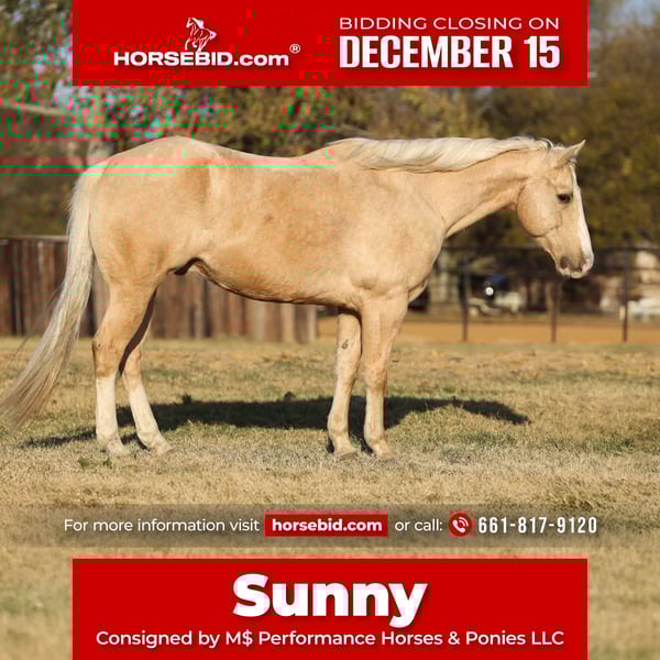 🎄𝐓𝐇𝐄 𝑯𝒐𝒍𝒊𝒅𝒂𝒚 𝐂𝐋𝐀𝐒𝐒𝐈𝐂🎄 Happening now thru MONDAY | DECEMBER 15th - Available EXCLUSIVELY on HorseBid's website! For more details and to register visit: www.Horsebid.com CONSIGNOR CONTACT: M$ Performance Horses & Ponies LLC 661-817-9120 LOCATION: Stephenville,TX BREED: Quarter Horse REGISTERED: Yes REGISTERED NAME: Two Smart Colossus COLOR: Palomino HEIGHT: 15.1 AGE: 9 GENDER: Gelding Two Smart Colossus “Sunny” — 2016 AQHA Palomino Gelding Standing 15.1 hands of pure class, Sunny is the kind you don’t just see — you remember. He’s a big, stout, old-school built gelding with a golden coat that shines like fresh desert sunrise. Grandson of Smart Little Lena, this is a horse bred with talent, brains, and presence. Sunny has been there and done that. A true seasoned ranch partner, he’s handled every outside job: gathering, sorting, long days checking cattle, dragging, doctoring — no surprises, no drama. He’s the horse you saddle when the work needs done right. He rides one-handed, soft, and correct. Smooth as silk at the walk, jog, or lope — he’ll tuck his head, stay collected, and lope slow circles all day long. Old soul, big heart, more whoa than go. He’s the gentleman that waits on you, not the horse you have to babysit. Sunny is traffic safe, flag-proof, balloon-proof, obstacle-tested and unfazed by chaos. Ride him alone down a country road or through the middle of town — the world can be loud and he stays quiet. He’s the horse everyone points at and whispers, “I want one like that.” He’s a beautiful mover, naturally balanced with a smooth stop and a classy turnaround. In the show pen he’s impressive. On the ranch he’s reliable. On the trails he’s a joy — bridges, water, logs, rough country — he simply walks through and gets it done. If you want a horse that brings big-time looks, honest broke ability, and family-friendly temperament, here he is. Sunny makes every ride feel like a good decision We are open to anyone interested in him to schedule a time to come see him or if you can’t make it schedule a FaceTime showing to see him. If you need help with transport don’t hesitate to ask we have a list of reputable haulers that can get him safely to your doorstep WORLD WIDE including, Alaska , Mexico, Hawaii, Canada and anywhere in between.