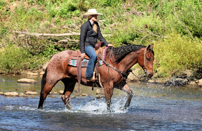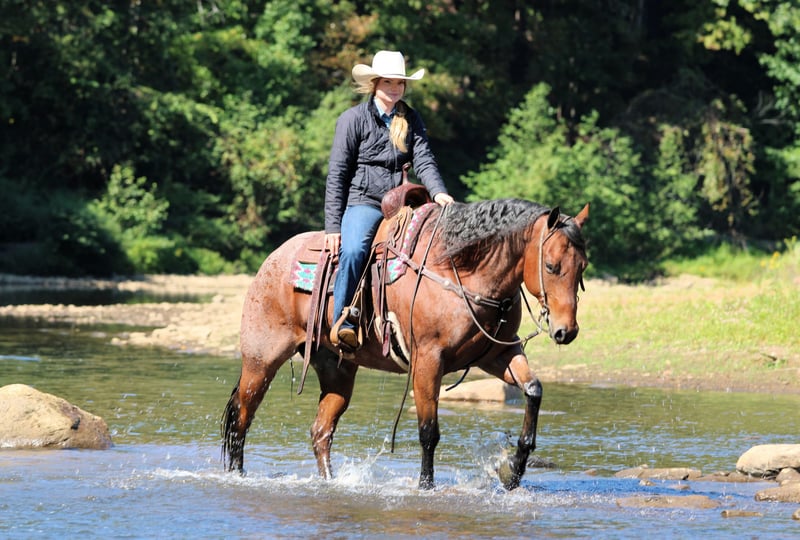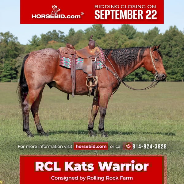 🍁𝒕𝒉𝒆 𝐅𝐀𝐋𝐋 𝑺𝒑𝒆𝒄𝒕𝒂𝒄𝒖𝒍𝒂𝒓🍁 Happening now thru MONDAY | SEPTEMBER 22nd - Available EXCLUSIVELY on HorseBid's website! For more details and to register visit: www.Horsebid.com CONSIGNOR CONTACT: Rolling Rock Farm 814-924-3828 LOCATION: Miola PA BREED: Quarter horse REGISTERED: Yes REGISTERED NAME: RCL KATS WARRIOR COLOR: Bay roan HEIGHT: 15.1 AGE: 9 GENDER: Gelding RCL Kats Warrior, known to everyone as Ranger, is a 9 year old AQHA registered gelding standing a solid 15.1 hands. He is exactly the kind of horse families and serious riders search for but rarely find. If you care about your safety in the saddle, Ranger is for you. He is genuinely husband safe, kid safe, and grandma broke, a gelding you can confidently put anyone on, from first time riders to seasoned horsemen who just want to relax. Ranger is very broke in the arena and a pleasure to ride. He will walk, trot, and lope willingly, carrying himself softly on a loose rein. He is easy to get going but not overly forward, making him both responsive and steady. His true one hand neck rein allows you to guide him with the lightest touch, and his willingness to ride bridleless and bareback shows his solid training and quiet mind. He is also an exceptionally comfortable ride, with smooth, naturally balanced gaits that make long hours in the saddle a true pleasure. Out on the trail, Ranger is the definition of slow and steady. He will confidently tackle all kinds of obstacles, from creeks and bridges to brush and wildlife, and always stays relaxed and sure footed. He has been down countless trails both alone and in a group, and he handles each ride with the same calm, dependable attitude. Ranger is also ranch handy and versatile. He will open and shut gates, is happy to chase cattle, and you can throw a rope off him without hesitation. He has also been used to pony colts, proving his patience and reliability around younger horses. Nothing seems to spook him, and his steady temperament makes every job easier. His personality is as appealing as his training. Ranger is extremely friendly and loves attention, always the first to greet you in the pasture with his ears forward. He is lower in the pecking order, so he gets along well in a herd. Whether he is kicked out on pasture or kept in a stall, he stays content and easy to manage. Ranger is ready to go. He is up to date on Coggins and rabies, has been recently dewormed, and is currently wearing four shoes.