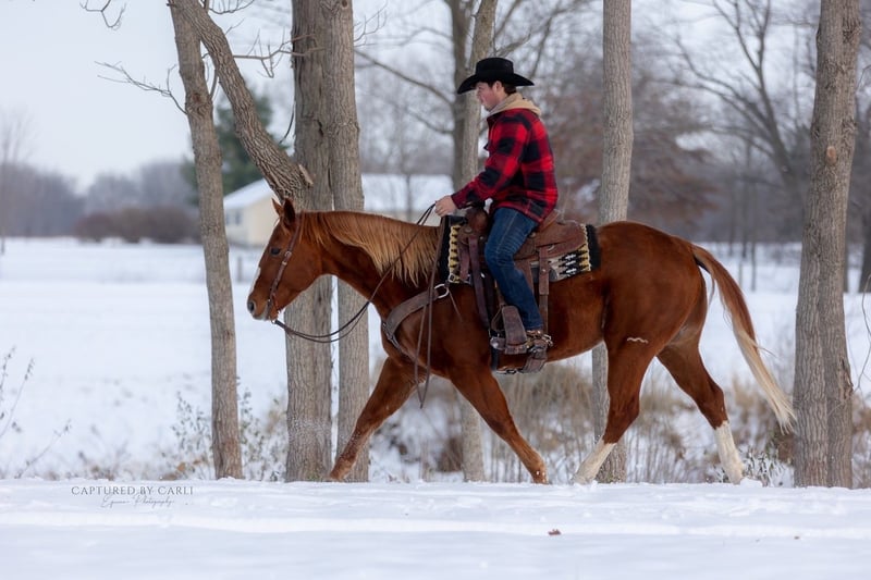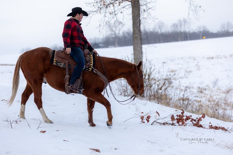 ⚜️𝐓𝐇𝐄 𝓗𝓮𝓻𝓲𝓽𝓪𝓰𝓮 𝐖𝐢𝐧𝐭𝐞𝐫 𝓒𝓵𝓪𝓼𝓼𝓲𝓬⚜️ Happening now thru MONDAY | DECEMBER 29th - Available EXCLUSIVELY on HorseBid's website! For more details and to register visit: www.Horsebid.com CONSIGNOR CONTACT: Wyatt Logsdon 217-740-9036 LOCATION: Lagrange, MO BREED: Quarter Horse REGISTERED: Yes REGISTERED NAME: WE MW DUDE BLUES COLOR: Sorrel HEIGHT: 15.2 AGE: 9 GENDER: Gelding Rusty is a 9 year old gentle gelding that has “been there done that” around the ranch! From gathering and pushing cattle to loading trucks and roping cattle outside, he’s done it all. Rusty side passes to open and close gates with ease, has a lot of cow sense when sorting pairs, and is always ready for the job you ask him to do! Not only is he great around the ranch but he trail rides the best as well! Rusty has been hauled to overnight trail rides and been rode in many different terrain! Take him down the road, through the pasture or obstacle course with confidence as he will be solid through it all. Rusty stands to be saddled, bathed, brushed etc. He loads and hauls well with other horses and backs off the trailer like a pro! Rusty gets along with other horses great in the pasture as well as good to be around in the stall! If you’re looking for your next ranch or trail horse Rusty is your guy to get the job done! FMI or to visit about Rusty don’t hesitate to call @ 217-740-9036