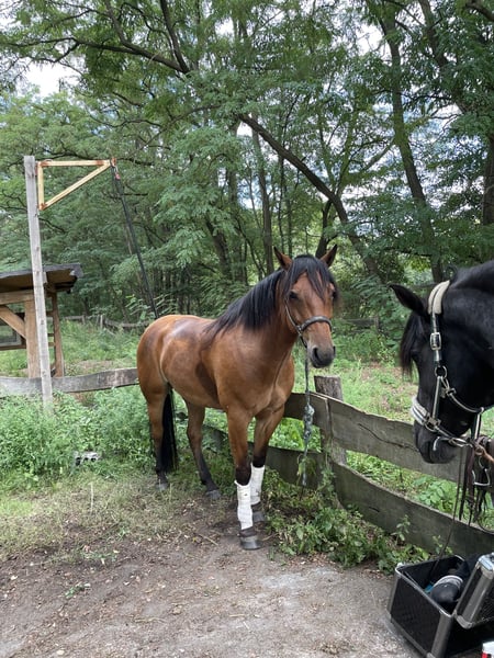 Hello, I am reluctantly offering my beautiful Quarter Mix gelding Atreju (born May 2015, approx. 1.58 m) for sale. Atreju is a very special horse to me: He is incredibly people-oriented, intelligent, attentive, and always gives 100% for his rider. When you approach the pasture, he whinnies at you – he is not just a sport partner, but a true friend. I have consistently trained him in Western riding over the past few years. In 2024, I have already introduced him to Barrel Racing, Poles, Keyhole, and Flag, where he was able to place successfully and demonstrated a lot of skill. He is brave, has strong nerves, and is desensitized – tractors, animals, and traffic are no problem for him. Atreju is a very willing horse that is always looking for new challenges and understands quickly. He wants to be developed and desires a person who will further his athletic abilities and continue to teach him new things. At the same time, he is reliable, honest, and always motivated. In the herd, he takes on a high but fair role, gets along with everyone, and is a good leader. I wish for Atreju a rider who recognizes his potential, challenges and supports him, and at the same time gives him the appreciation he deserves. He is a partner for someone who wants to grow together with him. He definitely takes after his father (Reining Horse) :) As I will soon begin my medical studies, I unfortunately would not be able to do him justice, which is why I am looking for a true friend for him. Videos are, of course, available. If you have any questions or are interested, feel free to reach out :)