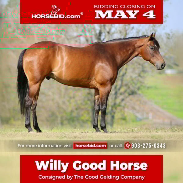 ▪️▫️◾️𝐭𝐡𝐞 𝑴𝒂𝒚 𝐒𝐞𝐥𝐞𝐜𝐭◾️▫️▪️ Happening now thru MONDAY | MAY 4th - Available EXCLUSIVELY on HorseBid's website! For more details and to register visit: www.Horsebid.com CONSIGNOR CONTACT: The Good Gelding Company 903-275-0343 LOCATION: Athens TX BREED: AQHA REGISTERED: Yes REGISTERED NAME: Willy Good Horse COLOR: Bay HEIGHT: 16 AGE: 10 GENDER: Gelding If you’re looking for a horse that can truly do it all—and do it well—Farley is the kind that doesn’t come around often. This is a finished, seasoned gelding with the kind of resume that speaks for itself, backed by 10 full pages of show miles across multiple disciplines. He’s the definition of a dependable, versatile partner. 10 years old, 16 hands, and 1400 lbs, you can’t look past a horse of this caliber. Farley is a standout in the show pen, having been successfully shown in western pleasure, hunter under saddle, and showmanship (SMS). He knows his job, shows up the same every time, and carries himself with the kind of consistency and polish that makes him a confidence builder for his rider. His transitions are smooth, his cadence is correct, and he’s got a flawless, easy lead change that anyone can appreciate. What really sets Farley apart is that he doesn’t live in a box. When you’re done winning in the arena, he’s just as happy to head out on the trail. He genuinely enjoys it—crosses water without hesitation, rides out alone or with a group, and stays steady and level-headed wherever you take him. He’s the same horse whether he’s been in full work or had some time off, making him an easy, low-maintenance ride to keep in your program. He’s also been used in lesson programs, proving his forgiving nature and reliability. Farley takes care of his rider, adjusts to their level, and stays honest and kind—making him suitable for a wide range of riders. To top it off, he’s been started over fences and has shown that he really enjoys it. If you’re looking to dabble in multiple disciplines or expand his already impressive resume, he’s more than willing. Farley is the kind you can confidently take in any direction—continue in the all-around, enjoy him as a dependable lesson horse, or simply have a fun, safe, and talented partner to ride and enjoy every day. He’s big, solid, experienced, and has the mind to match. This is a been-there, done-that gelding with a great attitude and the versatility to fit just about any program. Farley has loads of personality and is really just fun to have around and spend time with. He’d be happy to go back to work in a performance barn, but he’d be just as happy to be someone’s personal horse and show off all of his goofy traits; favorite places to scratch, the way his flips his lips up, and practically just acts like a dog. Farley has a full set of X-rays on file and he is completely sound. He wears a set of front shoes but he can go barefoot for those that prefer it.