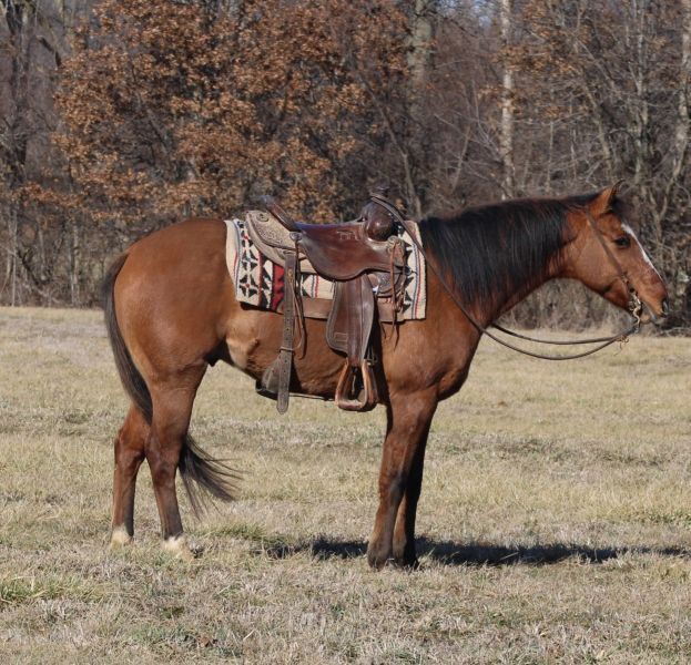 """AVAILABLE ON ONLINE HORSE AUCTION AT www.MagicHorseAuction.com BIDDING OPEN NOW thru TUESDAY | FEBRUARY 3RD! BUY IT NOW AVAILABLE! *Final price will be determined on auction site* CONSIGNOR CONTACT INFO: Mitch Titus #217-549-3803 LOCATION: Charleston, IL Freddy is an 11 year old AQHA dun gelding standing 14.2 hands that’s as solid and honest as they come. He is kid safe and grandma ridden, gentle enough for anyone to get along with and broke the right way. Freddy has been trail ridden extensively, is traffic safe and pasture ridden, and doesn’t get bothered by cars, trucks, or everyday noise. He’s been ridden from the central U.S. clear out into the western states and has seen all kinds of country, terrain, and situations, so new places don’t phase him. He’s easy to catch, stands tied, saddles and bridles quiet, and rides the same every time you swing a leg over him. This is the kind of gelding you can take out alone or with a group and just enjoy the ride. If you’re looking for a dependable, no-nonsense horse that takes care of his rider and won’t surprise you, Freddy fits the bill. Located in Charleston, Illinois.