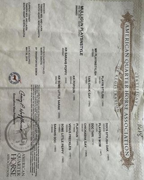 ONLINE AUCTION Place your bids at www.PlatinumEquineAuction.com Starting Bid $3500 Auction ends October 20th, 2024 Need a new saddle? Check out White Rock Saddles on our website or Facebook! Introducing Style, a top-tier registered gelding with impeccable breeding and a background in ranch work. Sired by the renowned Mr Playinstylish (LTE $145k) and out of a Playgun mare, Style is a remarkable combination of ability and temperament. Standing 14.3 hands weighing roughly 1250. Style is the epitome of gentle and safe. He’s well-suited for the entire family, whether you’re trail riding, working the ranch, or participating in shows. His calm demeanor and steady performance ensure a trustworthy experience for riders of all skill levels. * Style is a seasoned ranch gelding with countless hours of checking cattle solo. He has been a reliable partner for a rancher, thanks to his dependable nature and solid work ethic. ** Ideal for beginners looking to learn to ride or for young riders needing a safe mount. Style is gentle and responsive, making him a great choice for roping practice or casual rides. Whether you’re hitting the trails, participating in ranch riding shows, or just hopping on bareback, Style excels. He’s been hauled to various locations and handles all environments with ease. He’s freshly freshly shod, up-to-date on vaccinations and deworming. He has great ground manners; easy to groom, tack, and mount. Don’t miss this opportunity to own a well-bred, experienced gelding who is safe, reliable, and versatile. Style is ready to be a cherished member of your family and a dependable partner in your equestrian pursuits. Located in Turlock, CA. Contact Bailey Williams 209-841-9048 with any questions. ONLINE AUCTION Place your bids at www.PlatinumEquineAuction.com Starting Bid $3500 Auction ends October 20th, 2024 Need a new saddle? Check out White Rock Saddles on our website or Facebook!