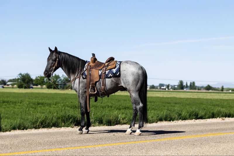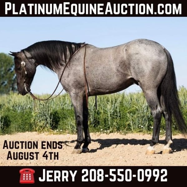 ONLINE AUCTION Place your bids at www.PlatinumEquineAuction.com Starting Bid $3500 Auction ends August 4th, 2024 Need a new saddle? Check out White Rock Saddles on our website or Facebook! Check out this Blu Roan BEAUTY!!! Standing 14.3H and 9 years old, Cruz is sooooo fun to ride and just as good to look at. A truly one of a kind gelding. He is extremely broke, he will spin like a Reiner, lopes and moves of your feet like a dressage horse and will “cruz” down the trail like a seasoned ranch horse. Cruz has seen and done it all from English dressage to ranching. This guy is soo smooth he feels like you’re loping on a cloud. Cruz has beautiful action when he travels, and is soft and supple. He is extremely fun under English tack and has been over some small cross country jumps. Cruz house been used on the ranch to gather cattle and has been roped on as well. Hes a calm horse that isn’t frazzled easily. Would make a great horse for an inexperienced rider or youth. Please watch his video too appreciate this great guy and give us a call if you have any questions or would like to come try him. Contact J Arrow Livestock Jerry 208-550-0992 for more info. Located in Caldwell, ID. ONLINE AUCTION Place your bids at www.PlatinumEquineAuction.com Starting Bid $3500 Auction ends August 4th, 2024 Need a new saddle? Check out White Rock Saddles on our website or Facebook!