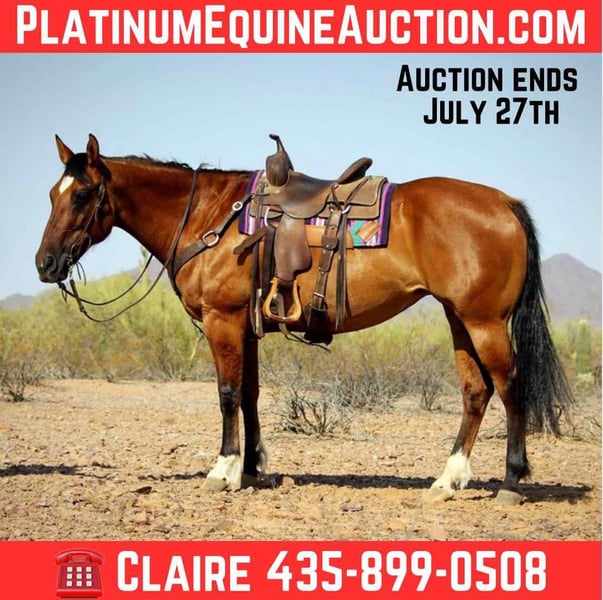 ONLINE AUCTION Place your bids at www.PlatinumEquineAuction.com Starting Bid $3500 Auction ends July 27th 2025 Need a new saddle? Check out White Rock Saddles on our website or Facebook Need a reliable, safe and sound ranch or trail partner? Denim is your girl! This gorgeous dun mare is 10 years old and stands a stout 15 hands tall. Denim has been used out on the ranch and is no stranger to a full day of work. This mare has a lot of heart and loves to have a job! She has sorted, gathered, been used at a few brandings, open and closes gates and has a lovely ground covering walk to get you from one place to the other. Denim is super gentle, has a nice neck rein, turn around and back up. She’s also a great trail horse since she’s seen a lot of outside miles! She is not spooky at all and will cross anything you ask her to. She is one of those mares that gives you her all every day. To top it off, this mare is an absolute love bug on the ground. She loves attention and treats and will stand tied all day for bathing and grooming. She is good for the farrier and is currently shod on all four. Denim hops right in the trailer ready to go on adventures or go to work and hauls nicely alone or with others. She has been handled by kids on the ground and is very respectful of their space, a handy kid would get along with her great riding as well. Denim is sound with no maintenance needs and is an easy keeper! If you love a mare with a big heart that wants to move mountains for you, check out Denim! She will come with a fresh coggins and health certificate. Happy to help arrange transport anywhere! Feel free to call or text Claire Siebols 435-899-0508 with any questions. Located in Marana, AZ. ONLINE AUCTION Place your bids at www.PlatinumEquineAuction.com Starting Bid $3500 Auction ends July 27th 2025 Need a new saddle? Check out White Rock Saddles on our website or Facebook