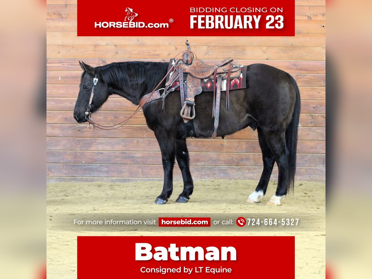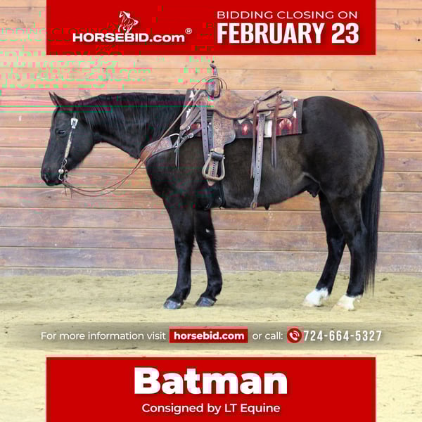 💎 𝐓𝐇𝐄 𝓓𝓲𝓪𝓶𝓸𝓷𝓭 𝐒𝐇𝐎𝐖𝐂𝐀𝐒𝐄 💎 Happening now thru MONDAY | FEBRUARY 23rd - Available EXCLUSIVELY on HorseBid's website! For more details and to register visit: www.Horsebid.com CONSIGNOR CONTACT: LT Equine 724-664-5327 LOCATION: Miola PA BREED: Grade QH REGISTERED: No REGISTERED NAME: Batman COLOR: Black HEIGHT: 15 AGE: 11 GENDER: Gelding 🖤 BATMAN 🖤 11-Year-Old | 15 Hands | Black Gelding If you’re searching for that steady, laid-back, confidence-building type that truly takes care of his rider — meet Batman. Batman is the definition of a “whoa over go” gelding. He’s kind, gentle, and happiest taking life slow and easy. The kind you can throw just about any level rider on and feel comfortable. ✨ Under Saddle • Walks on a loose rein • Smooth, easy trot — no constant kicking or holding • Nice, relaxed lope • Stops easily • Neck reins • Backs up & side passes He rides soft, steady, and uncomplicated. No rush, no drama. 🌳 On the Trail Batman is a fantastic trail partner. • Goes out alone or in a group • Calm and relaxed follower • Been around cattle, traffic, flags, and “the teddy bear” • Not spooky or over reactive He takes the world in stride and keeps his rider confident. 🧼 Manners & Care • No vices • Excellent ground manners • Stands tied quietly • Good for farrier, bathing, and tacking • Lowers his head and kindly opens his mouth for the bridle • Loads and Hauls great He will have a small scar on his nose, purely cosmetic and does not affect him in any way. ⸻ If you’re looking for that dependable, steady-eddy type that’s happy to go slow and take care of his rider, Batman is your guy. Safe. Honest. Easy to be around. Easy to ride. For more information give me a call or text. We can help set up shipping if needed. Fresh Coggins and Health Exam, and Front Shoes.