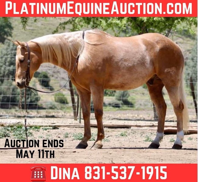 ONLINE AUCTION Place your bids at www.PlatinumEquineAuction.com Starting Bid $3500 Auction ends May 11th, 2025 Need a new saddle? Check out White Rock Saddles on our website or Facebook! Alright, horse lovers, let’s talk about Apollo This 10-year-old 24 karat heart of gold palomino gelding is not just a horse; he’s a 15 hand bundle of charm and reliability. If you’re looking for a safe, bombproof mount for the whole family, this is your guy. Parades? Check. Trails and beaches? Double-check. What I love most is his “point-and-go” style—no drama, just smooth riding whether you’re with a group or solo. Beginners to advanced riders can hop on without a worry. Plus, he’s not just safe, he’s impressively trained. One-hand turnarounds? Perfect lead changes? A stop that’ll make you grin from ear to ear? You don’t even need a bridle he will do anything for you. Yes, yes, and yes! He backs up like a pro with just a gentle touch. Whether you’re hitting the trails or showing off in ranch versatility events, Apollo shines. Flags,tarps, bridges he’s got you covered. This boy can do it all. Traffic is just another day at the office for this unflappable horse trucks, cars and pedestrians no big deal he will calmly walk right past it. Gathering, roping or sorting cattle he’s the top hand ranch horse. Oh, and did I mention he’s a total sweetheart? Easy to catch, chill during tacking and bath time (he might even snooze!), and a gem for grooming and great for the farrier. He hops in any trailer ready to go see new sights. Stalls,pastures great. Trust me, this horse is the real deal. Contact Dina at Longhorn Ranch 831-537-1915 in Paicines, CA, and prepare to be amazed. ONLINE AUCTION Place your bids at www.PlatinumEquineAuction.com Starting Bid $3500 Auction ends May 11th, 2025 Need a new saddle? Check out White Rock Saddles on our website or Facebook!