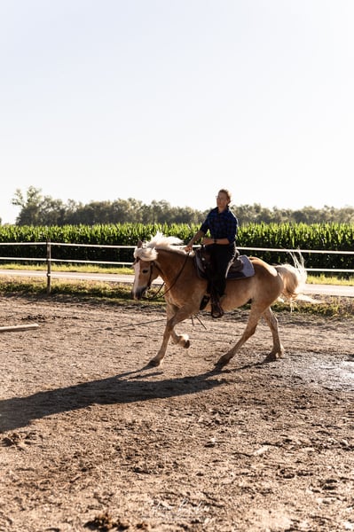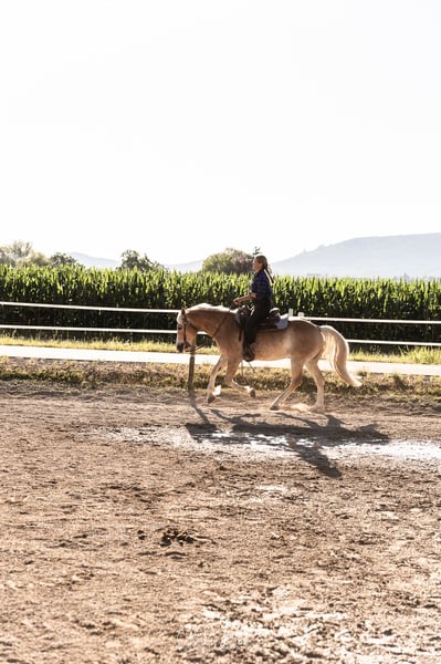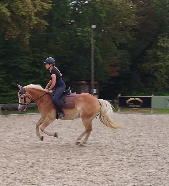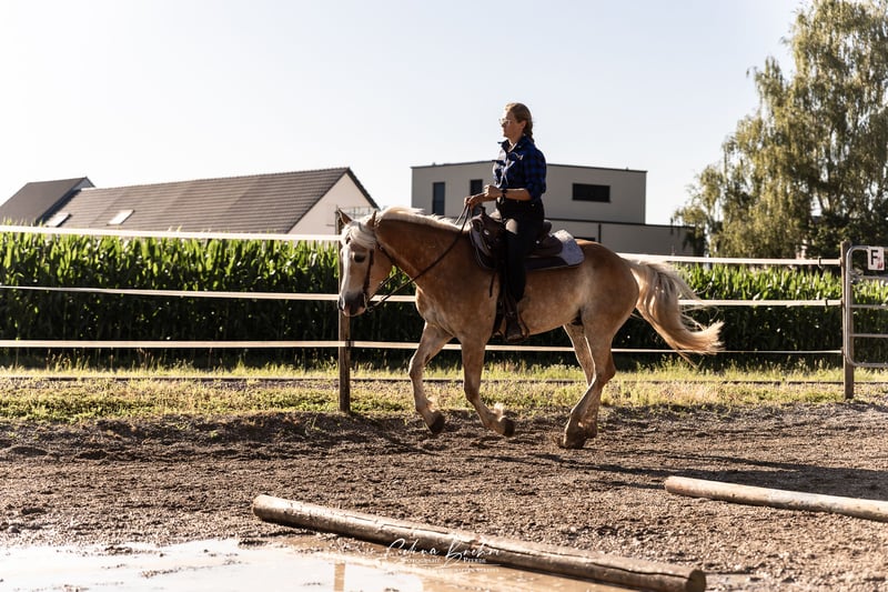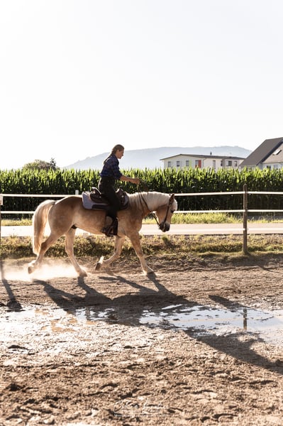 Obelix is a 10-year-old, highly trained and talented Quarter-Haflinger cross gelding. His greatest strength lies in Western riding disciplines. All maneuvers in Trail, Horsemanship, and Ranch Riding are well within his repertoire: walk over, jog over, lope over, turn, back up, side passes, turns, all transitions, inside and outside leads, counter canter, extended trot, extended lope, and more. He is proficient in all lateral movements (shoulder-in, haunches-in, two-track) at walk and trot, with shoulder-in at canter still in progress. Obelix is already comfortable riding one-handed in the bit and responds delicately to weight aids. He also reliably works on the halter in all gaits. Obelix has gained some first competition experience and has placed in events, including 1st place in Trail at level 4-5B. With a bit more routine, especially with a confident rider, he could become a very reliable partner up to level 3 or even higher. Unfortunately, we rarely take him to external training sessions (1-2 times per year), so he was somewhat tense under the competition atmosphere, but everything remains manageable. Under an experienced rider, he shows enormous talent and eagerness to learn, with significant potential for success both in leisure riding and competition. From the ground, he is well-trained: classical groundwork, lunging work, double longeing, and free jumping are part of his daily routine. For several years, he has been used in my riding school. Besides versatile Western work, he has also served as a vaulting horse and has participated in longeing lessons, which he performs patiently and calmly. He has an ambitious teenage riding partner (13 years old), who is already working on flying changes and is currently training him to canter on the centerline at the desired gait. He is also suitable for advanced, motivated teenagers, provided they have a good seat and give correct aids. Anyone attempting to steer solely with the inside rein without proper weight aids will not succeed. He loves long, hours-long rides, preferably in mountainous terrain! Before coming to me, he was a reliable trail horse for three years. He can ride alone or in a group. Occasionally, I have also done some fun jumps with him to give him more variety. He needs to see the jumps first, but then he makes a decent jump. He’s not a serious jumper, but for fun, he’s absolutely suitable. I don’t see him as a dressage horse; he finds bit and Western riding very appealing and is very grateful when he can ride without reins (while maintaining positive tension). I could also imagine him pulling a carriage, although we have only used a tire on the riding arena so far. His steering is already well developed thanks to double longeing. He has no previous health issues, is well-behaved at the blacksmith, and loads reliably. **Why is he being sold?** In recent months, he has increasingly shown that beginners, especially hesitant riders, are not his favorite. He tends to become reluctant to move forward and refuses to trot or canter when ridden by less experienced riders. This behavior disappears when an experienced rider is on board, and after thorough checks (saddle fit, physiotherapy, etc.), it’s clear that his expectations of the rider are simply higher than what beginners can meet. It’s difficult to prevent novice riders from sitting improperly in a riding school setting. Additionally, he thrives on activity and long, extensive rides, which are often limited to 30-minute sessions during lessons. This is especially unsatisfactory for him in the colder months, as it leaves him under-stimulated. Furthermore, in my herd, there are some insecure, low-ranking horses that he enjoys chasing when they run away—perhaps he would even like to become a cutting horse someday! :D **Important:** He is absolutely unsuitable for box stall housing! He becomes very distressed if confined and needs plenty of free movement. He has always been kept in a large paddock and needs this type of turnout. During courses or competitions, he can stay in a box for a day, but otherwise, he requires a lot of space to move freely. Overall, I see tremendous potential in him. I want to support his development and hope he finds a place where he can be further trained and appreciated, without having to carry beginners on his back. He has an excellent education and now deserves the chance to shine every day! A suitable high-quality saddle can be purchased additionally for €1,800. Trial riding is possible at any time (€50), which will be deducted from the purchase price.