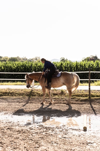 Zum Verkauf steht Obelix, ein 10 Jahre alter, sehr gut ausgebildeter und talentierter Quarter-Haflinger-Mix-Wallach. Sein größtes Talent liegt im Western-Bereich. Hier sind alle Manöver im Trail, Horsemanship und Ranch Riding voll abrufbar: Walk over, Jog over, Lope over, Tor, Back Up L, Turns, alle Übergänge, Innen & Außengalopp, Kontervolte, ext. Trot, ext. Lope...... Er berherrscht alle Seitengänge (Schulter herein, Kruppe herein, Two Track) im Schritt und Trab, Schulterherein im Galopp ist noch in Arbeit. Obelix ist in den Basics bereits gut einhändig im Bit zu reiten und reagiert fein auf Gewichtshilfen. Auch am Halsring läuft er zuverlässig in allen Gangarten. Er konnte bereits erste Turniererfahrungen sammeln und war hier auch schon plaziert: unter anderem 1. Platz Trail LK 4-5B. Mit etwas mehr Routine wird er auch da, bis zur LK 3 oder auch höher mit entsprechendem Reiter, ein äußerst zuveräner Partner werden. Wir sind leider zu selten im Auswärtstraining (1-2x pro Jahr), so dass er doch als mal etwas angespannter unter der Turnieratmosphäre war. Aber alles händelbar. Unter erfahrenem Reiter zeigt er sich enorm talentiert und wissbegierig und hat auf jeden Fall sehr großes Potential sowohl im Freizeit als auch im Turnierbereich erfolgreich zu laufen. Vom Boden aus ist er gut ausgebildet: Klassische Handarbeit, Kappzaumarbeit, Doppellonge, Freiarbeit gehören zu seinem täglich Brot. Seit einigen Jahren wurde er bei mir im Schulbetrieb eingesetzt. Hier war er neben der vielseitigen Arbeit im Westernbereich auch als Voltigierpferd, sowie bei Longenstunden eingesetzt, was er sehr geduldig und brav mitgemacht hat. Er hat eine ambitionierte Reitbeteiligung (13 Jahre), die mit ihm in Rahmen des Unterrichts bereits an der Vorbereitung für fliegende Wechsel ist. Sie erarbeitet mit ihm derzeit den Angalopp auf der Mittellinie im gewünschten Galopp. Er ist auch für gute, fortgeschrittene Jugendliche geeignet. Vorausgesetzt sie können ordentlich sitzen und korrekte Hilfen geben. Wer versucht am Innenzügel ohne korrekte Gewichtshilfen zu lenken, wird scheitern. Er liebt stundenlange Ausritte, am liebsten bergig! Vor seiner Zeit bei mir war er 3 Jahre zuverlässiges Wanderreitpferd. Er kann alleine, sowie in der Gruppe ausreiten gehen. Zeitweise habe ich mit ihm auch ein paar Spaß-Sprünge gemacht, um ihn mehr auszulasten. Anfangs muss er sich die Sprünge immer erstmal anschauen, macht dann aber einen ganzen netten Sprung. Wird sicherlich kein krasses Springpferd, aber für den Spaß zwischendurch absolut brauchbar. In der Dressur sehe ich ihn überhaupt nicht, er findet das Bit und das Westernreiten schon sehr sympathisch und ist sehr dankbar wenn man ohne Zügel (aber mit positivem Spannungsbogen) reiten kann. Könnte ihn mir auch an der Kutsche vorstellen, da haben wir aber bis jetzt nur nen Reifen über den Reitplatz gezogen. Lenkung ist dank Doppellonge bereits gefestigt. Er hat keine Vorerkrankungen, ist brav beim Schmied, brav beim Verladen. Warum wird er nun verkauft? Er zeigt in den letzten Monaten immer mehr, dass ihm Anfänger, vor allem klemmende Reiter, unsympathisch auf seinem Rücken sind. Er möchte dann nicht mehr vorwärts gehen, weigert sich anzutraben/anzugaloppieren. Da das Verhalten weg ist, sobald ein erfahrener Reiter drauf sitzt und auch sonst alles abgeklärt wurde (Sattel, Physio etc), sind seine Ansprüche an den Reiter einfach höher als die Reitanfänger ihnen gerecht werden können. Dass Anfänger nicht perfekt auf dem Pferd sitzen, lässt sich in einer Reitschule leider nicht verhindern. Zudem ist er ein Pferd, dass viel Beschäftigung, lange ausgiebige Ausritte liebt und vorallem auch braucht. Im Rahmen des Unterrichts reicht die Zeit meist nur für 30 Minuten Ausritte, was ihn dann vor allem in der kalten Jahreszeit eher missmutig stimmt und nicht auslastet. Hinzu kommt, dass in meiner Herde auch einige unsichere, sehr rangniedrige Pferde sind. Es macht ihm leider großen Spaß diese auch mal zu jagen wenn sie so schön wegrennen... Vielleicht möchte er auch ein Cutting-Pferd werden? :D Für Boxenhaltung ist er absolut ungeeignet!!! Er randaliert so lange bis er nicht mehr eingesperrt sein muss! Bei mir stand er immer im großen Offenstall und das braucht er auch auf jeden Fall. Bei Kursen und Turnieren kann er auch mal für nen Tag in der Box stehen. Aber ansonsten braucht er vieeeeel freie Bewegung. In Großen und Ganzen sehe ich in ihm noch sehr sehr viel mehr Potential, ich möchte seinen Ansprüchen gerecht werden und wünsche mir deshalb, dass er einen Platz bekommt, wo er noch intensiver gefördert wird, ohne Anfänger auf seinem Rücken tragen zu müssen. Er hat eine super gute Ausbildung und darf jetzt auch die Chance bekommen, damit täglich zu glänzen! Passender hochwertiger Sattel kann mit übernommen werden (zusätzlich 1800€). Probereiten jederzeit möglich (50 €), wird beim Kauf verrechnet.