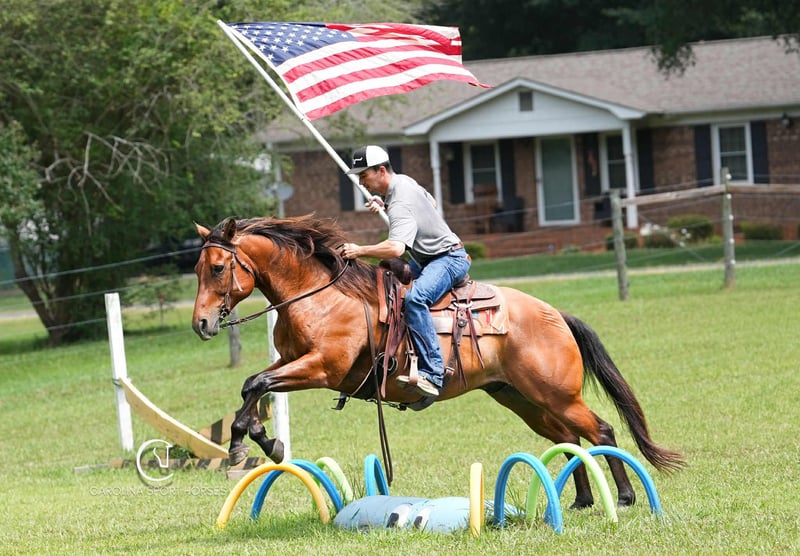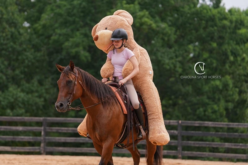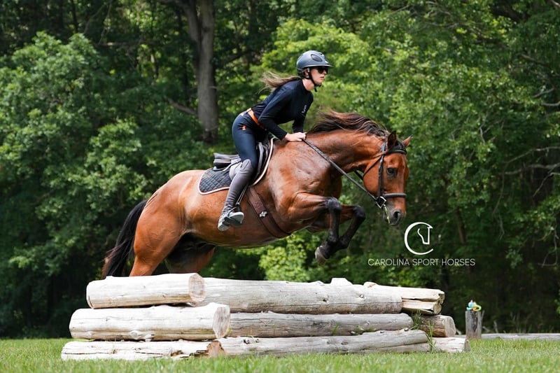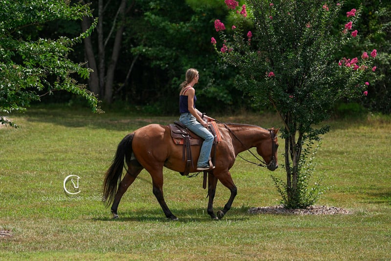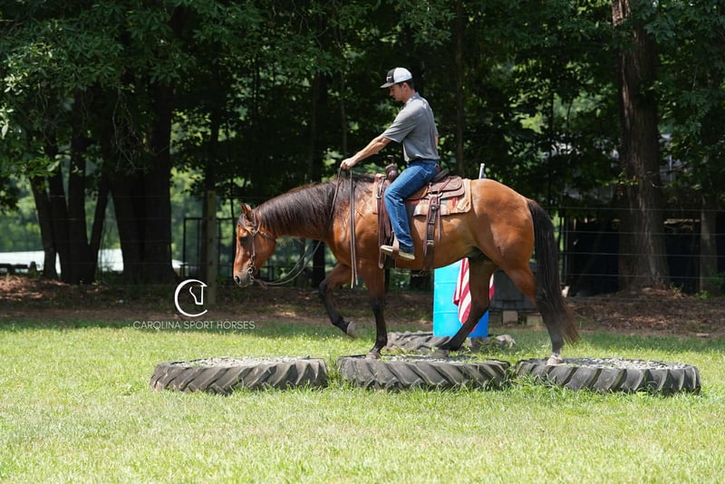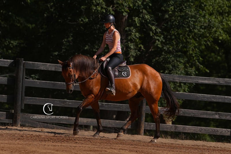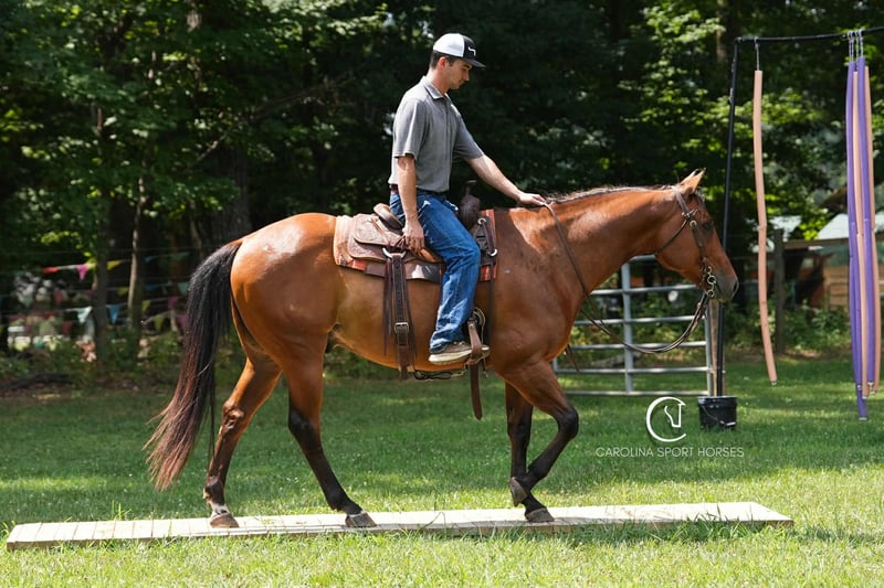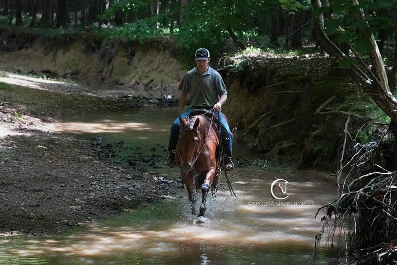 ⚜ The HERITAGE Classic ⚜ Happening now thru MONDAY | AUGUST 11th - Available EXCLUSIVELY on HorseBid's website! For more details and to register visit: www.Horsebid.com CONSIGNOR CONTACT: Carolina Sport Horses Kieran 908-645-2127 or Caleb 704-813-3509 LOCATION: Clover, SC BREED: Quarter Horse REGISTERED: Yes REGISTERED NAME: DS Romans Luck COLOR: Bay HEIGHT: 15.1 AGE: 11 GENDER: Gelding DS Romans Luck “Roman” is an 11 year old AQHA gelding standing 15.1 hands high. Roman is a useful horse to have around the farm. The kids enjoy taking lessons on him, guests and friends can take him out on trail rides, and he’s a blast on the cross country course and on hunter paces too! He’s at a great age where he’s seen and done it all - nothing phases him, and nervous riders don’t bother him. He knows his job, does it well, and can do just about anything you can dream up. Roman might be one of the most tolerant horses we have ever had when it came to doing all of the fun “spooky” video we do with our horses. We really couldn’t get a rise out of him, and the kids had so much fun! In the ring, Roman is simple and straightforward. He rides around on a loose rein, has a wonderful easy neck rein, and good brakes. He is broke both English and western, and the kids love to hop on him bareback! He did the lesson horse job before coming to us, so he is no stranger to bouncy kids, nervous nellys, and adults getting their confidence back. He will jump around small fences in the ring, and has lots of experience schooling on the cross country course and jumping all the fences out on hunter paces. Off property and on the trails, Roman is the best! He is a tried and true trail master. Water, traffic, hills, obstacles, anything in front of him he handles with ease and bravery. He will ride out alone, pony youngsters, or ride in a group. You can throw anyone up on his back and know they will be safe and enjoy their ride! In the barn, Roman is sweet and gentle. He can be handled by anyone, and has great ground manners. He’s a good boy for all the usual barn tasks, and enjoys all the attention he gets! He’s easy to catch, and lives out in a mixed herd. Roman is an easy keeper with no vices or maintenance required. ♦️ Recent Clean Vet Check on File ♦️Our program produces versatile and family-friendly horses for all disciplines and levels of the sport. While at our farm, every horse is handled, ridden, and loved by us and our children. We make sure our horses are well versed in trail riding, going off property, attending clinics and lessons, and some go to horse shows, and fox hunt. This is a family operation priding ourselves in finding and producing quality family, amateur friendly horses for all ages and disciplines. Check out our website for testimonials! ♦️We are located in Clover, SC. We can help you arrange shipping anywhere! ♦️For more information about Roman, or any of our other horses call or text us. Kieran 908-645-2127 Caleb 704-813-3509