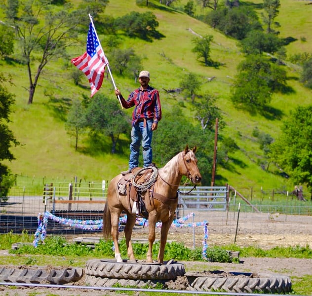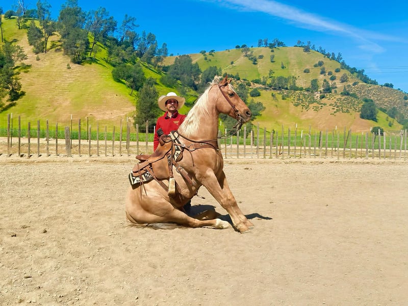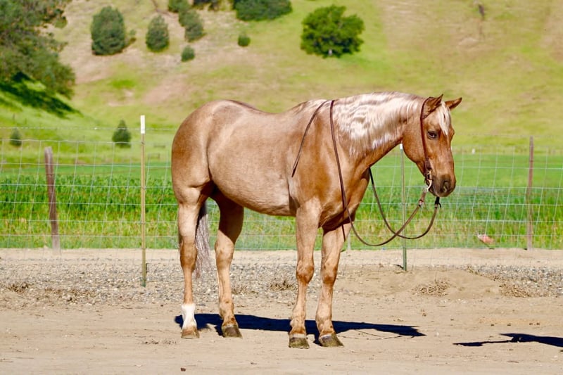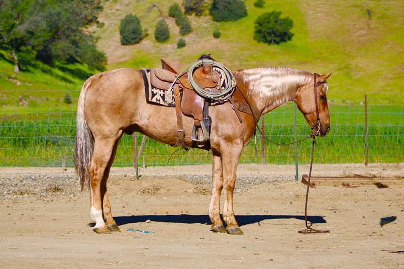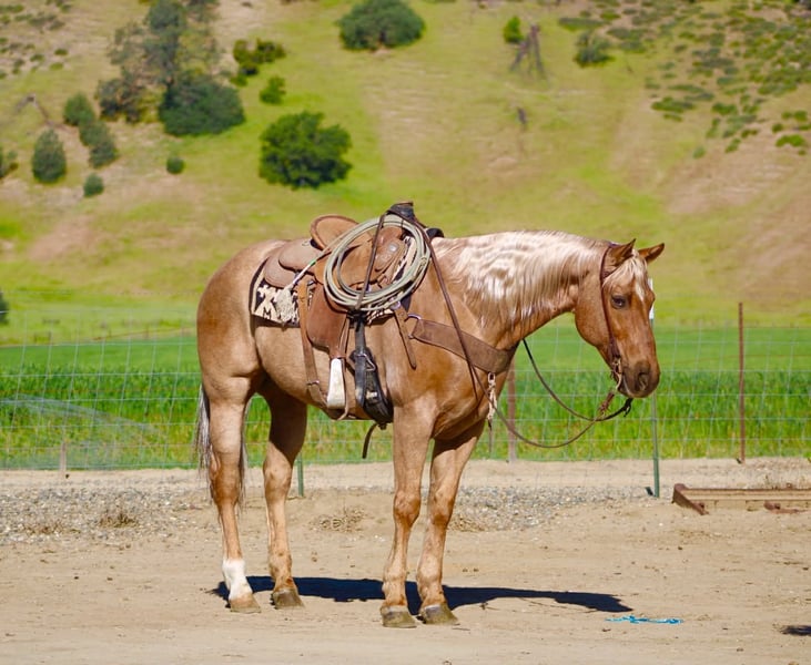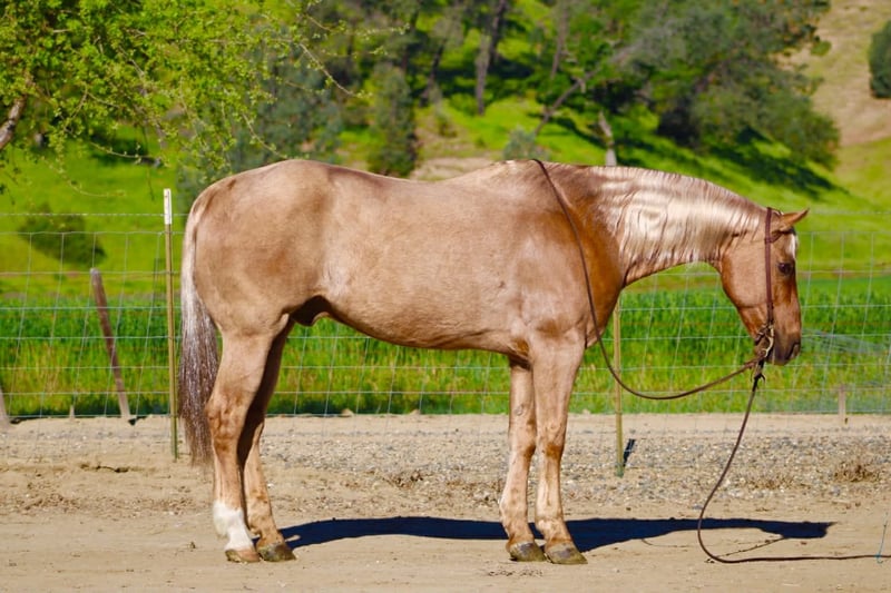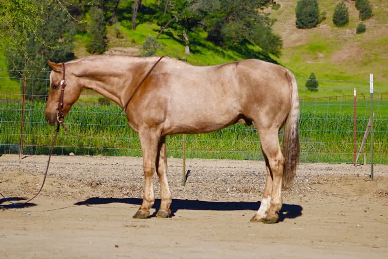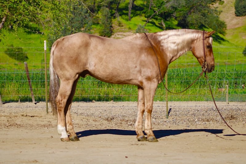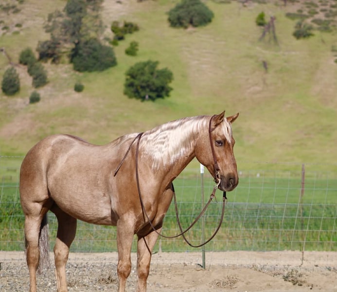 "AVAILABLE ON ONLINE HORSE AUCTION AT www DOT PlatinumEquineAuction DOT com BIDDING OPEN NOW thru SUNDAY | APRIL 12TH! *Final price will be determined on auction site* CONSIGNOR CONTACT INFO: Longhorn Ranch 831-537-1915 LOCATION: Paicines, CA AL 11-Year-Old Golden Palomino Gelding • 15.1 Hands Good looks will get your attention… but it’s the kind you can count on that matter. AL is the whole package. Golden, eye-catching, and built just right—but what really sets him apart is the kind of horse he is every single day. Steady, honest, and ready to go to work or take care of you. AL is a true go-anywhere, do-anything gelding with a solid ranch background. He’s been used to gather and move cattle from pasture to pasture, brand, and handle everyday ranch work with a quiet, willing attitude. He stays level-headed around cattle, reads them well, and is dependable when there’s a job to get done. In the arena, he’s broke and handy. He lopes nice circles, stays soft in the bridle, spins correctly, has a smooth stop, and backs with ease. Everything about him is user-friendly and comfortable, making him enjoyable for a wide range of riders. He’s the kind that teaches beginners what a well-broke horse should feel like, yet remains solid for experienced riders who want one they can go do anything on. Outside, AL is as solid as they come. He rides out alone or with a group, crosses water and bridges without hesitation, and handles the trail like it’s second nature. Traffic, commotion, and new surroundings don’t shake him. He’s been exposed to tarps, flags, and obstacles and handles it all with a quiet, unbothered mindset. Sure-footed and confident, he takes care of his rider. And here’s something you don’t find every day—AL will lay down and sit on command. Not a trick horse, just one that’s exceptionally trained, willing, and tuned in to his person. He’s also the kind you enjoy being around. Friendly, easy to catch, stands quiet for the farrier, hauls great, and is simple to tack up and go. He fits into your program without the fuss—and makes you glad you’ve got him every time you saddle up. Longhorn Ranch Dina • 831-537-1915 Paicines, CA Shipping available anywhere in the U.S. with reputable haulers. Come see him in person or reach out to set up a video chat.