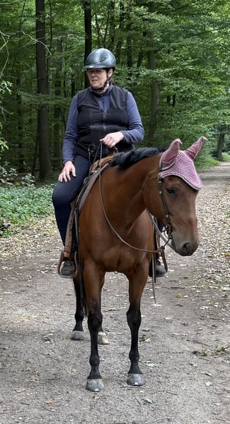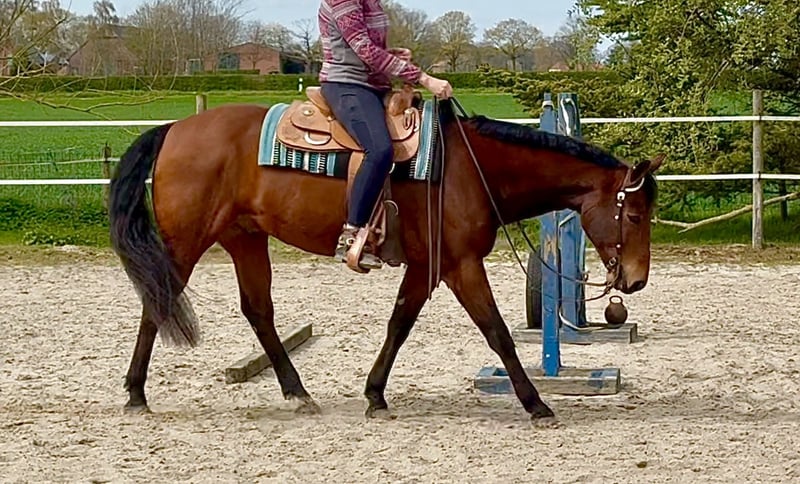11 jähriger Quarterhorse Wallach 158 cm, rangniedrig Solide Grundausbildung , Turniererfahrung , liebt Ausritte. Happy wird verkauft an eine erfahrene, leichte Westernreiterin, die ihm gerne regelmäßig reitet oder Bodenarbeit macht und Lust auf Ausritte , Kurse oder kleinere Turniere hat. Er wird unter Wert verkauft , da er eine anatomisch bedingte Patellafixation hat, die aber durch den richtigen Beschlag, regelmäßiges Training und einer bewegungsorientierten Haltung (auch im Winter) sehr gut im Griff ist. Er ist voll reitbar. Aktuelles Reitvideo auf Anfrage . Weitere Infos telefonisch unter 0172 1824165